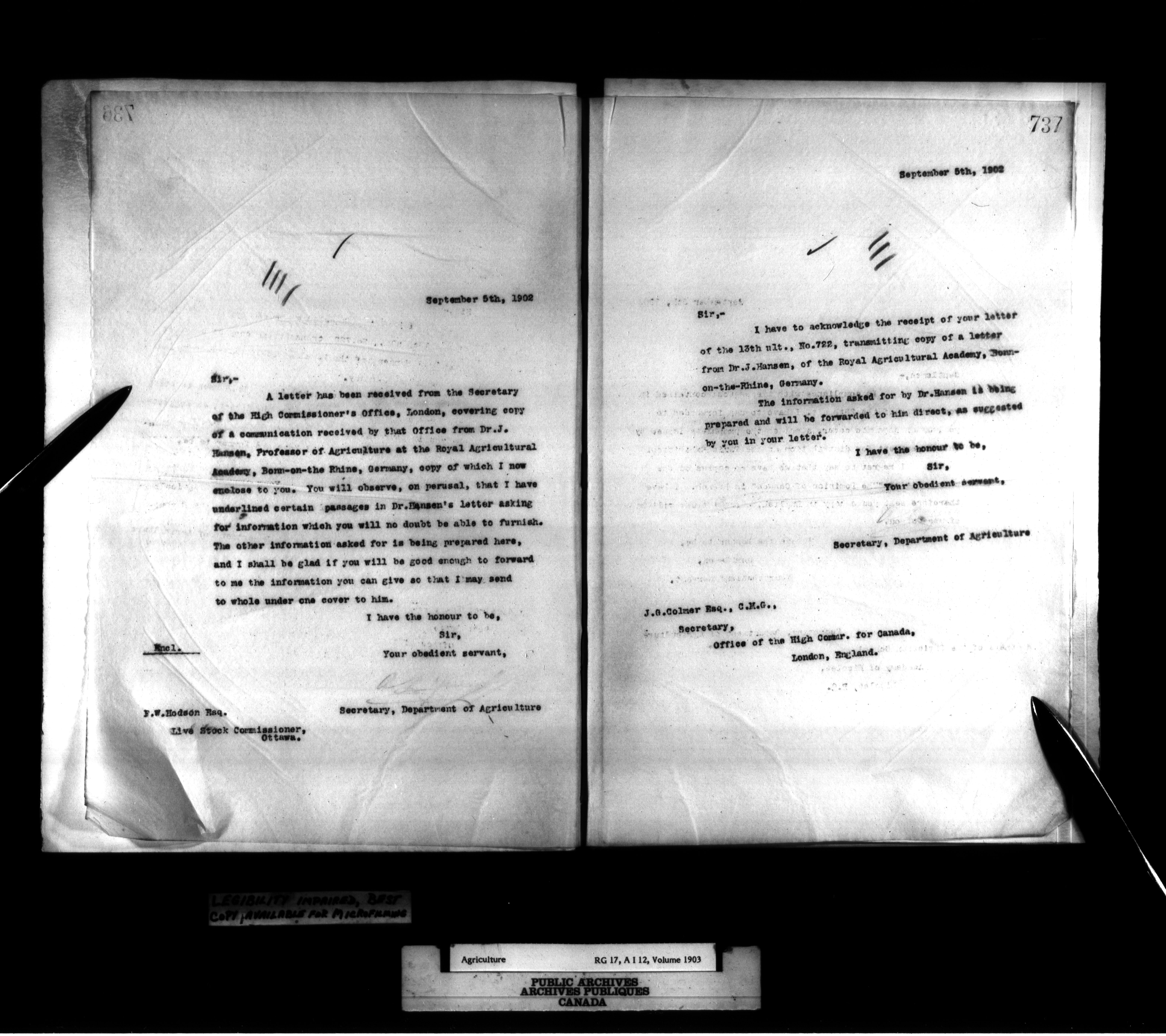 Department of Agriculture : Secretary and Assistant Deputy Minister's letterbooks, 1881-1916 - 988
