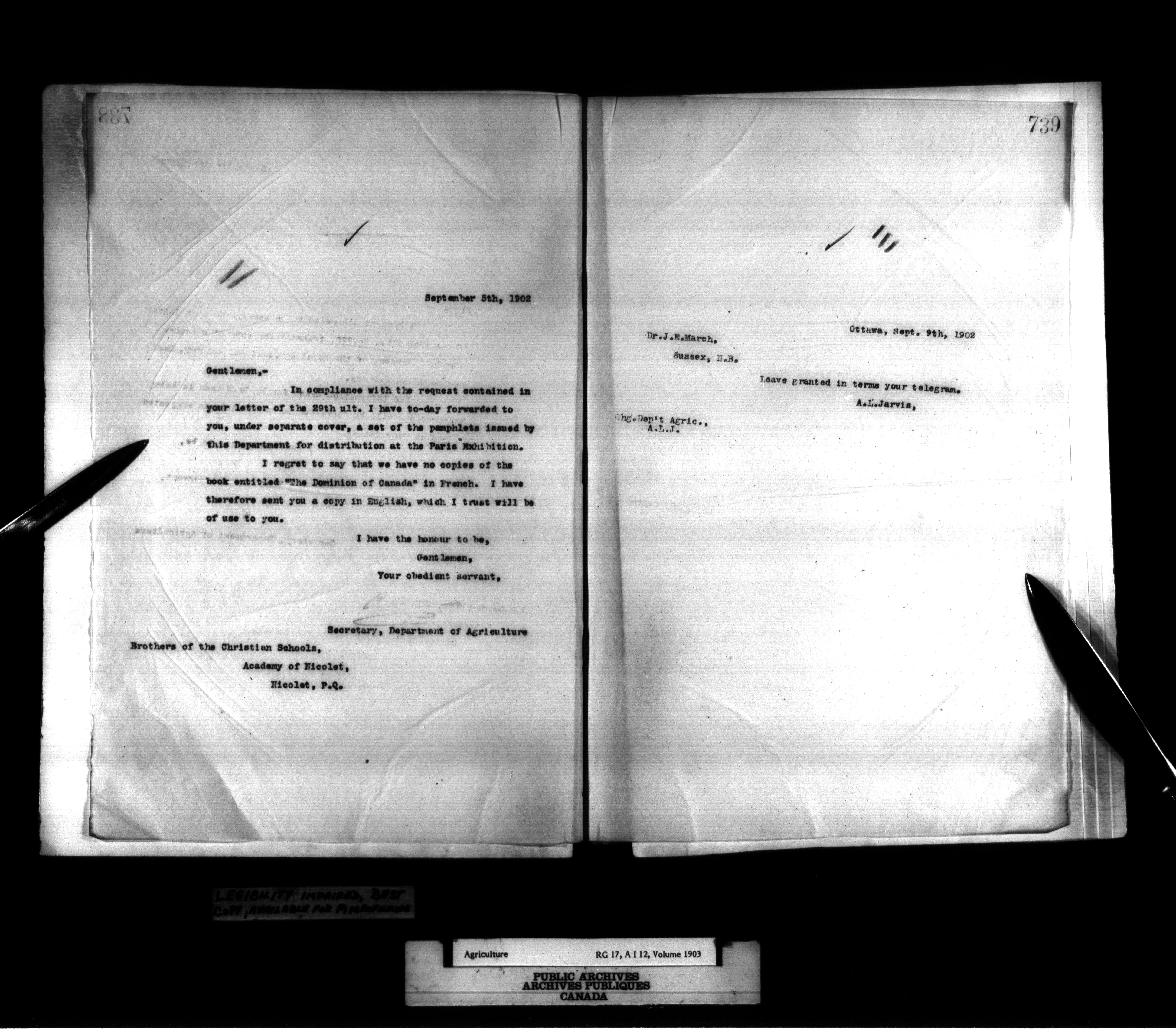 Department of Agriculture : Secretary and Assistant Deputy Minister's letterbooks, 1881-1916 - 988
