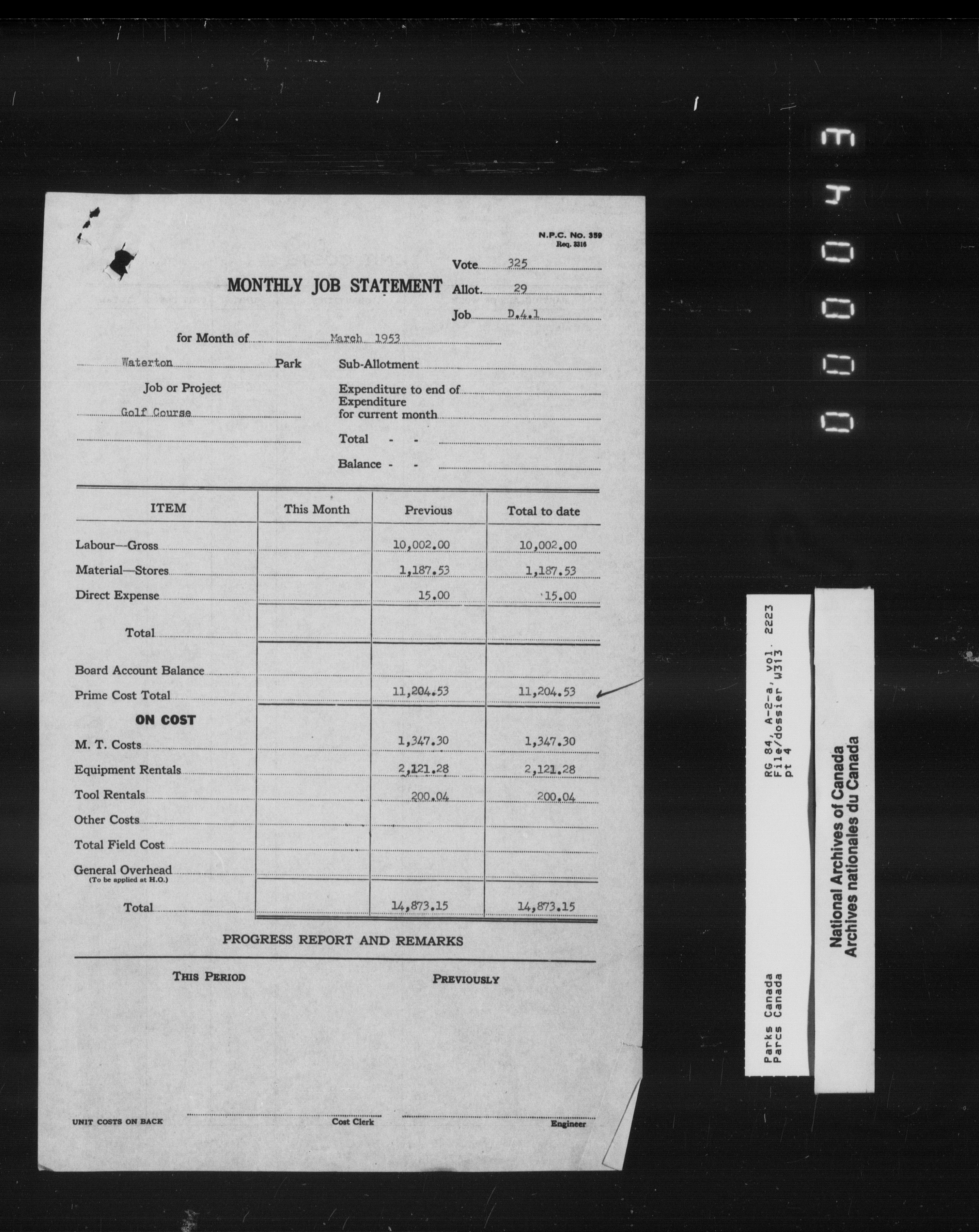 Department of Canadian Heritage, Canadian Parks Service : Park/subject classification system - 9882