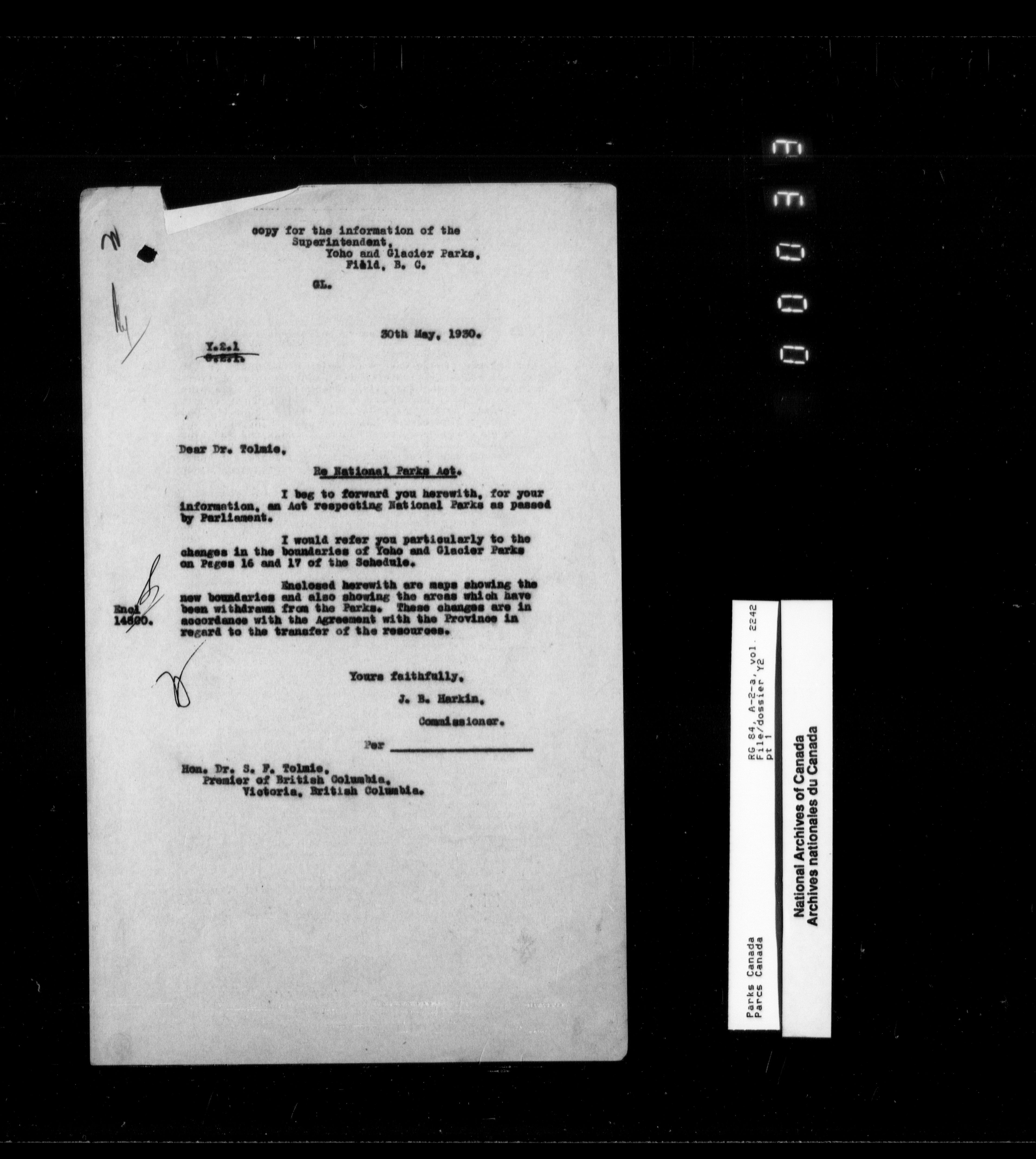 Department of Canadian Heritage, Canadian Parks Service : Park/subject classification system - 9889
