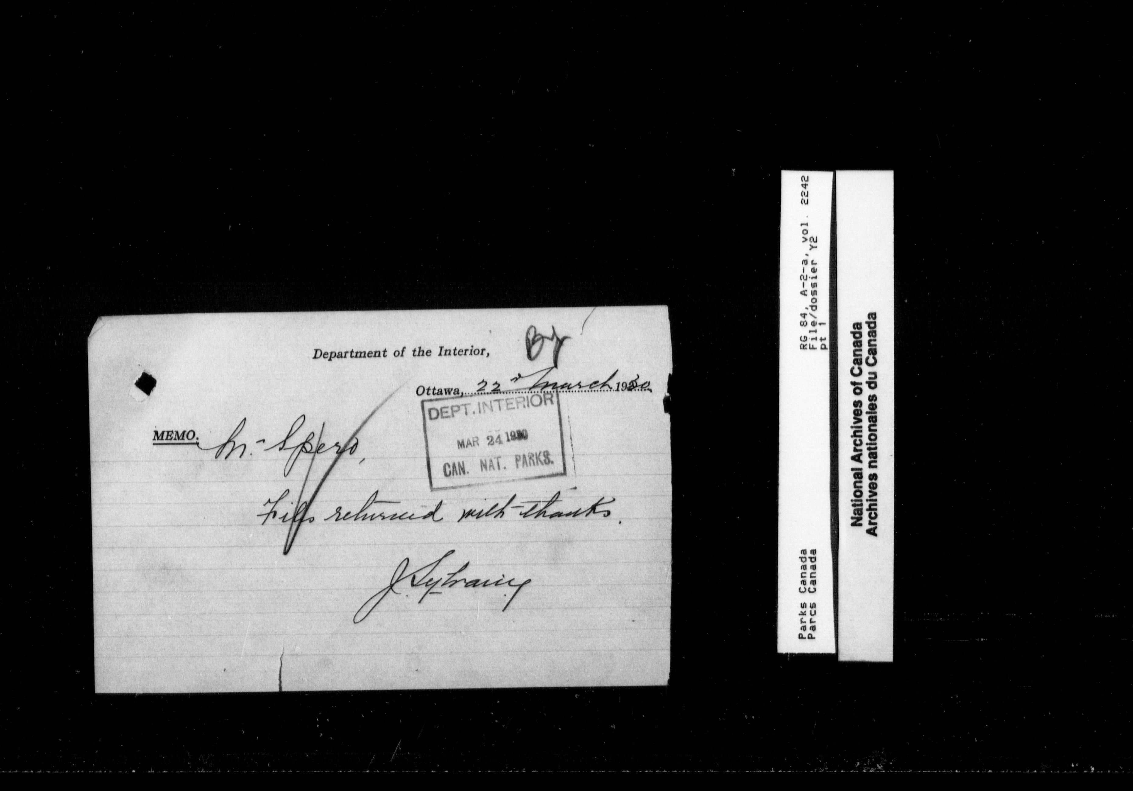 Department of Canadian Heritage, Canadian Parks Service : Park/subject classification system - 9889