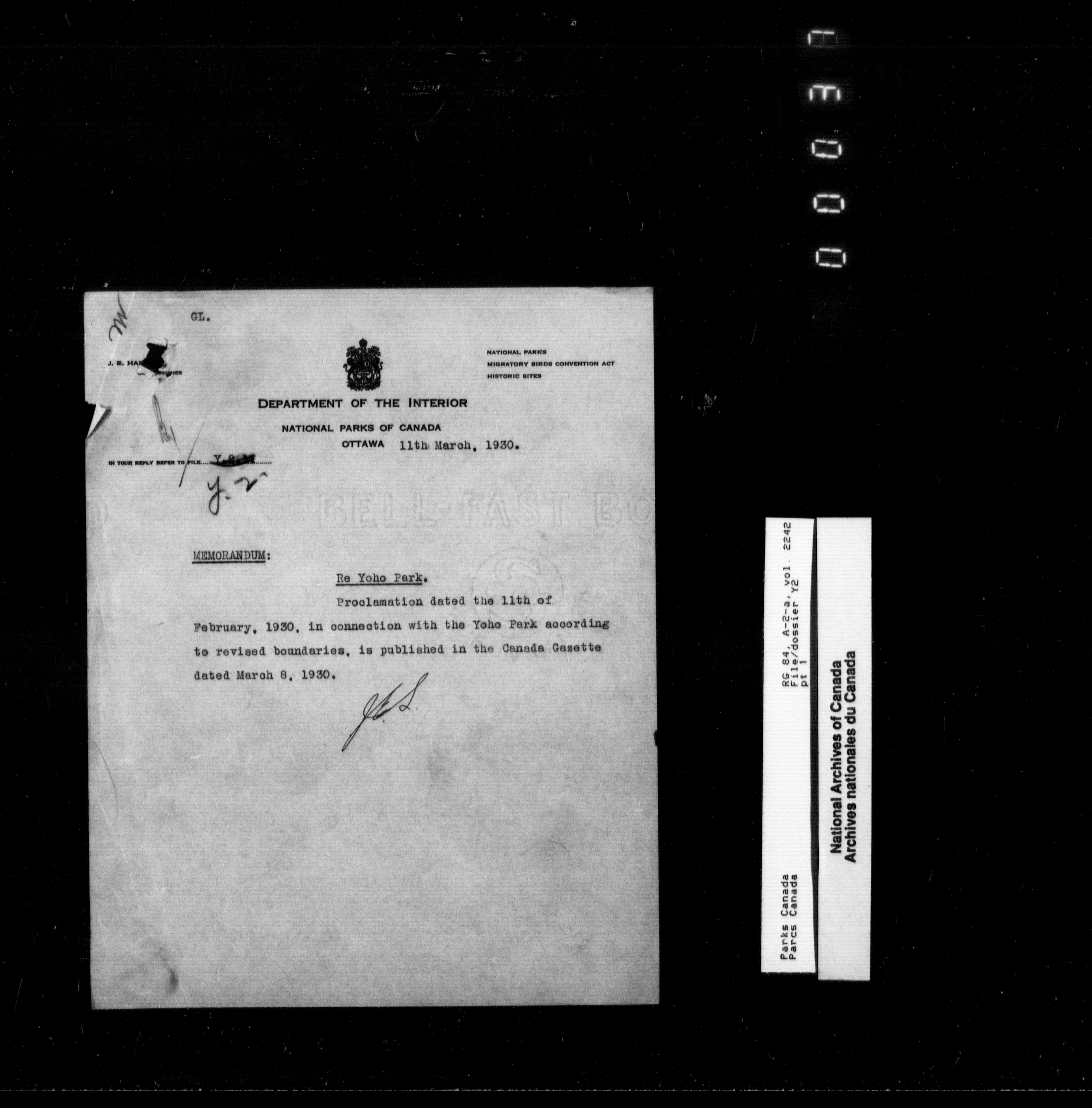 Department of Canadian Heritage, Canadian Parks Service : Park/subject classification system - 9889