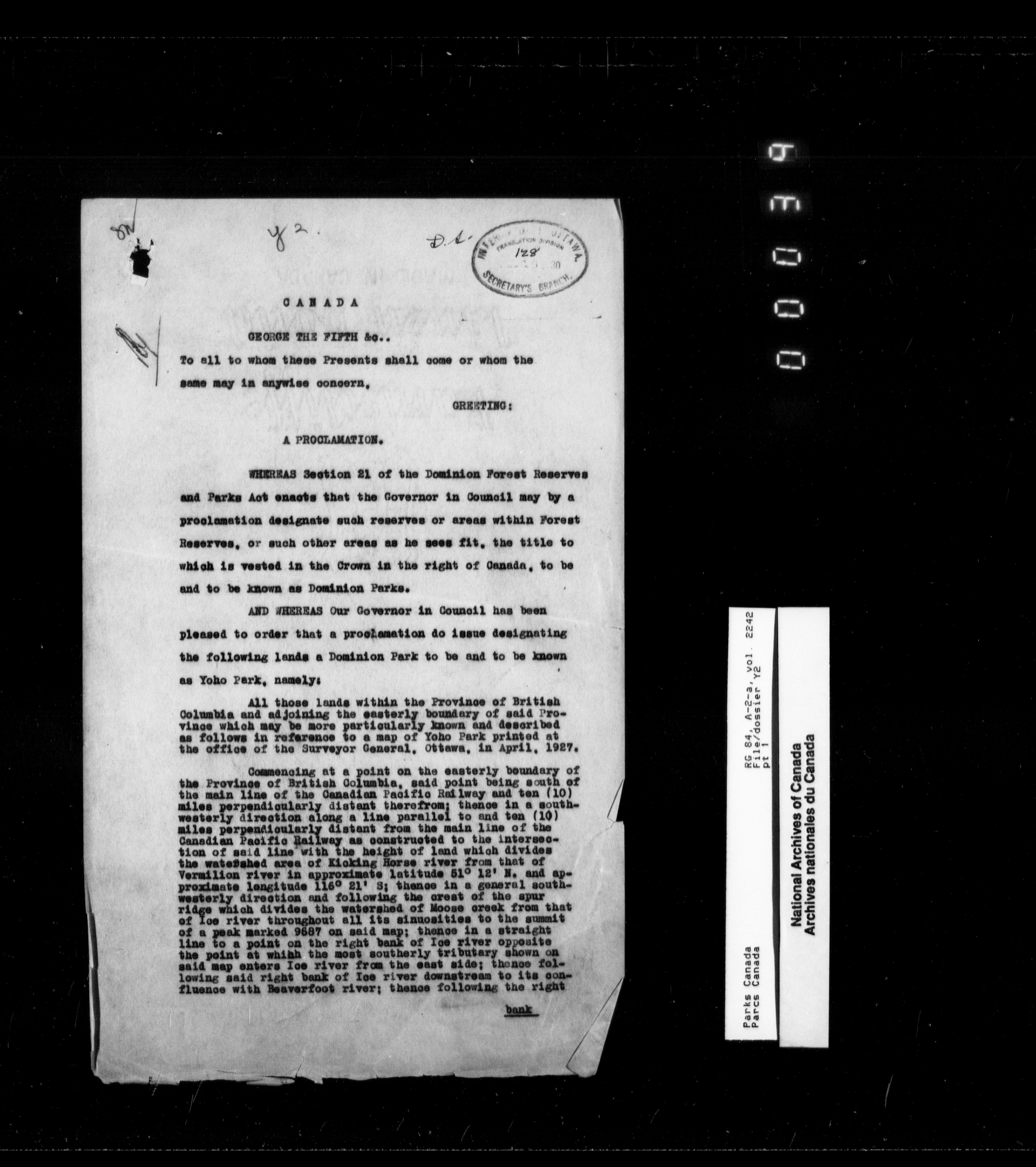 Department of Canadian Heritage, Canadian Parks Service : Park/subject classification system - 9889