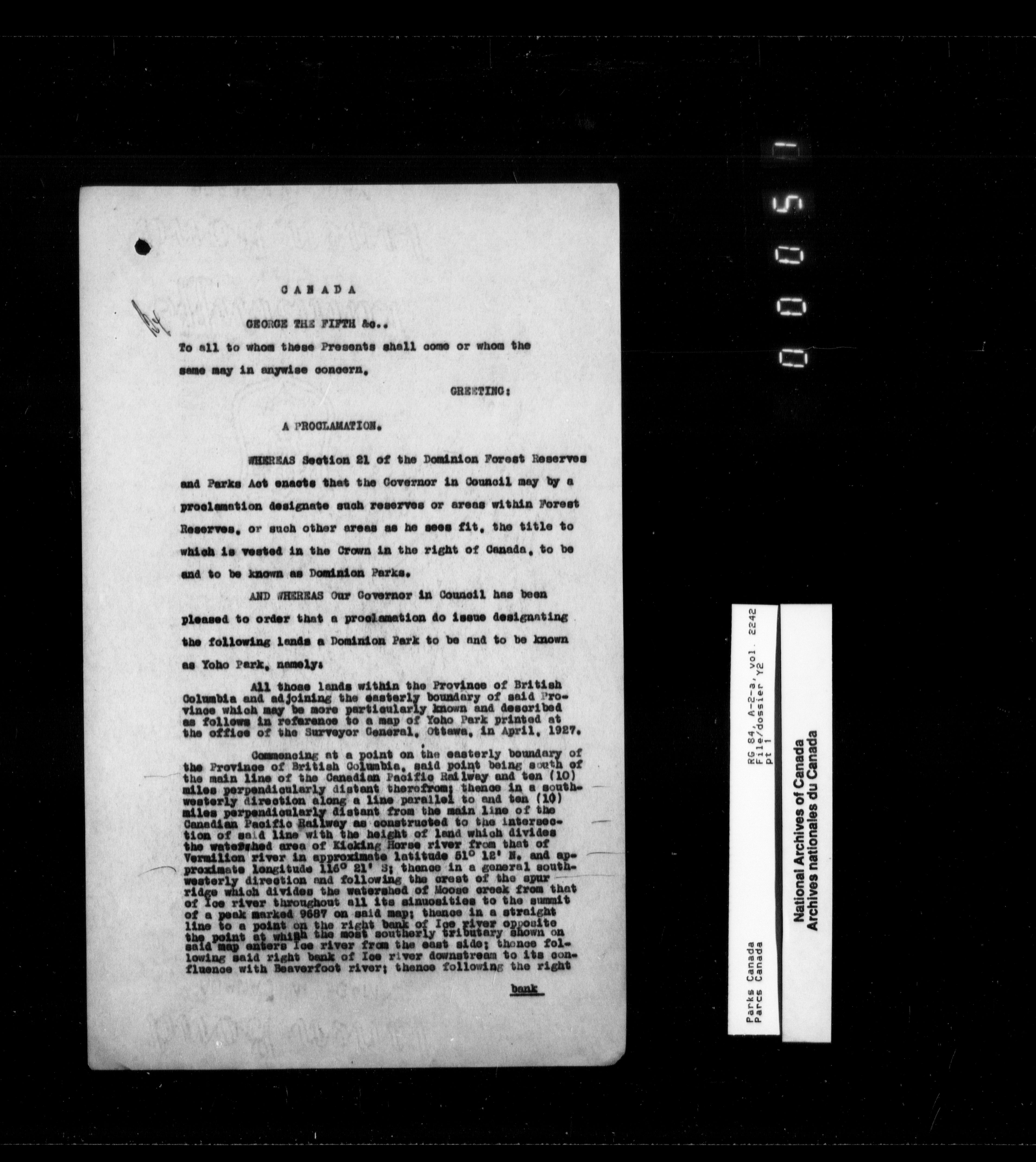 Department of Canadian Heritage, Canadian Parks Service : Park/subject classification system - 9889