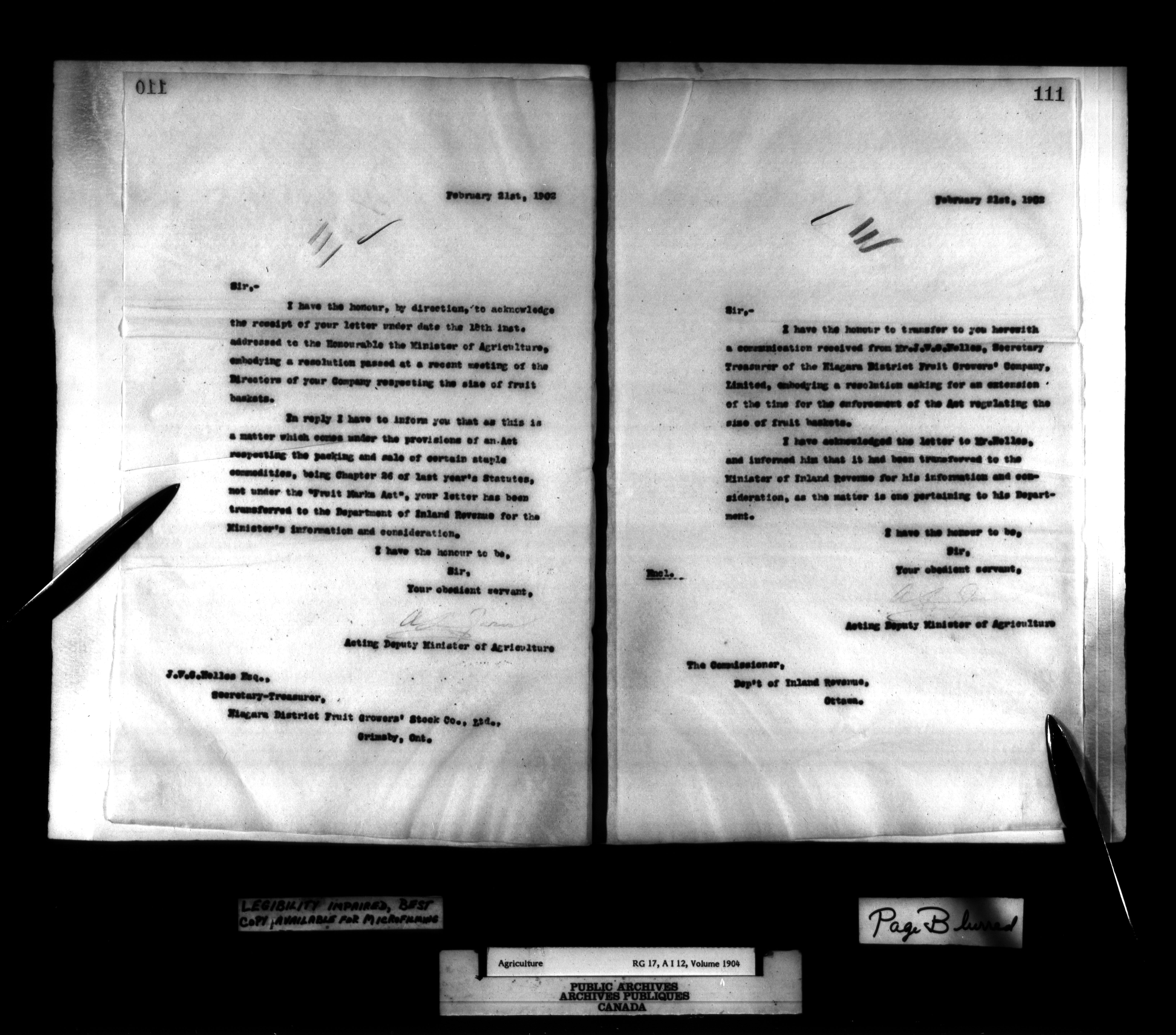 Department of Agriculture : Secretary and Assistant Deputy Minister's letterbooks, 1881-1916 - 989