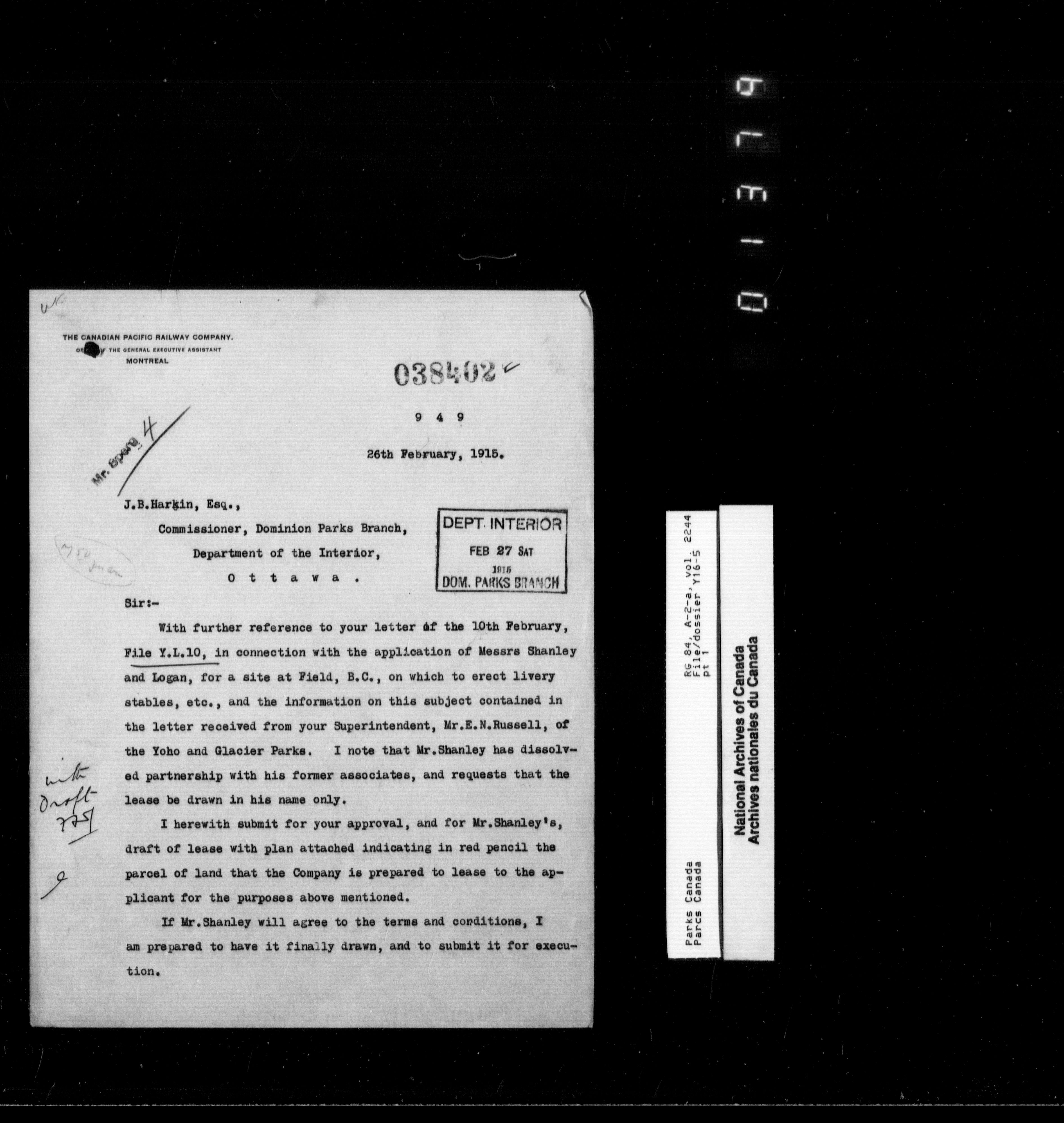 Department of Canadian Heritage, Canadian Parks Service : Park/subject classification system - 9890