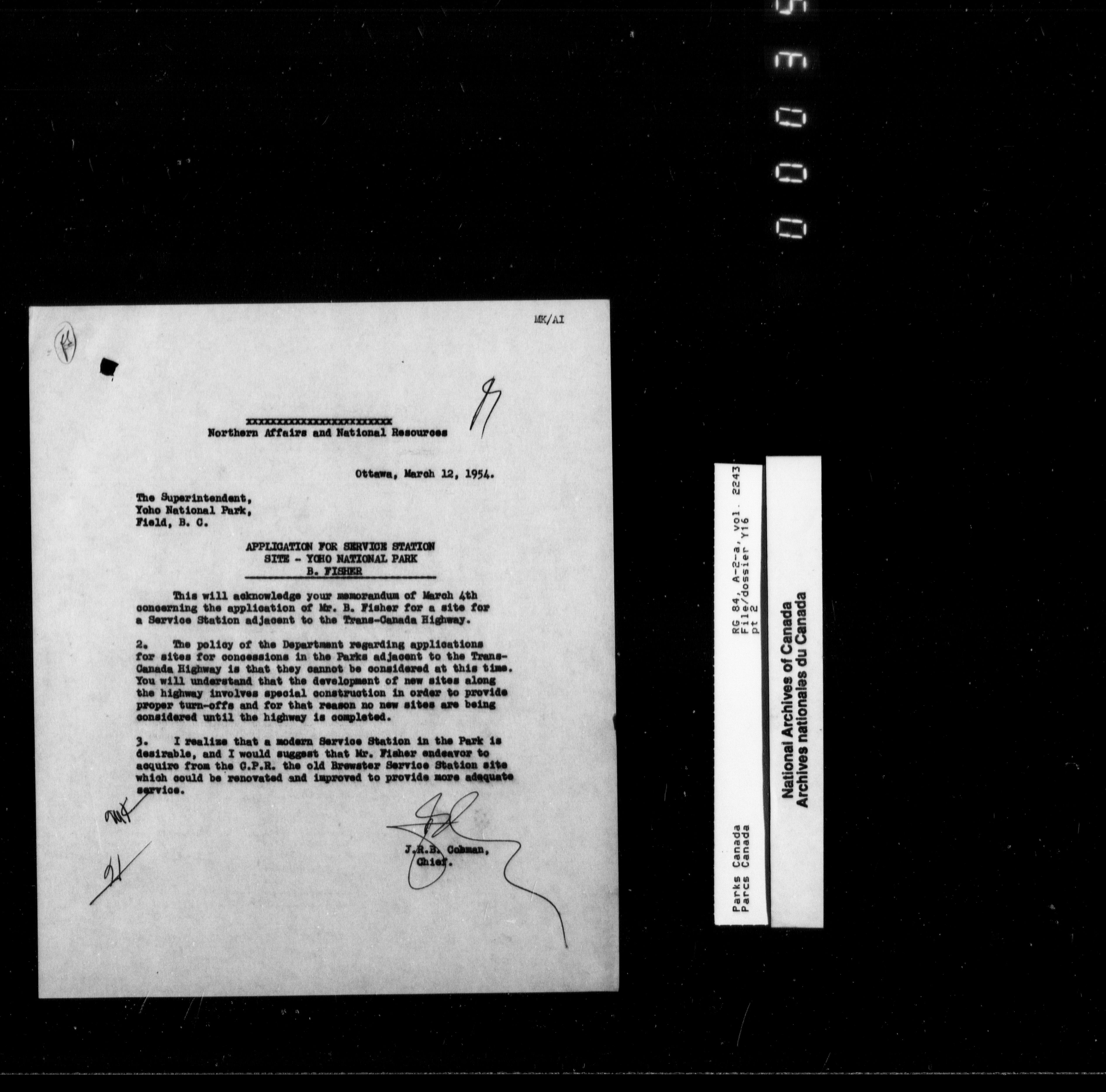 Department of Canadian Heritage, Canadian Parks Service : Park/subject classification system - 9890