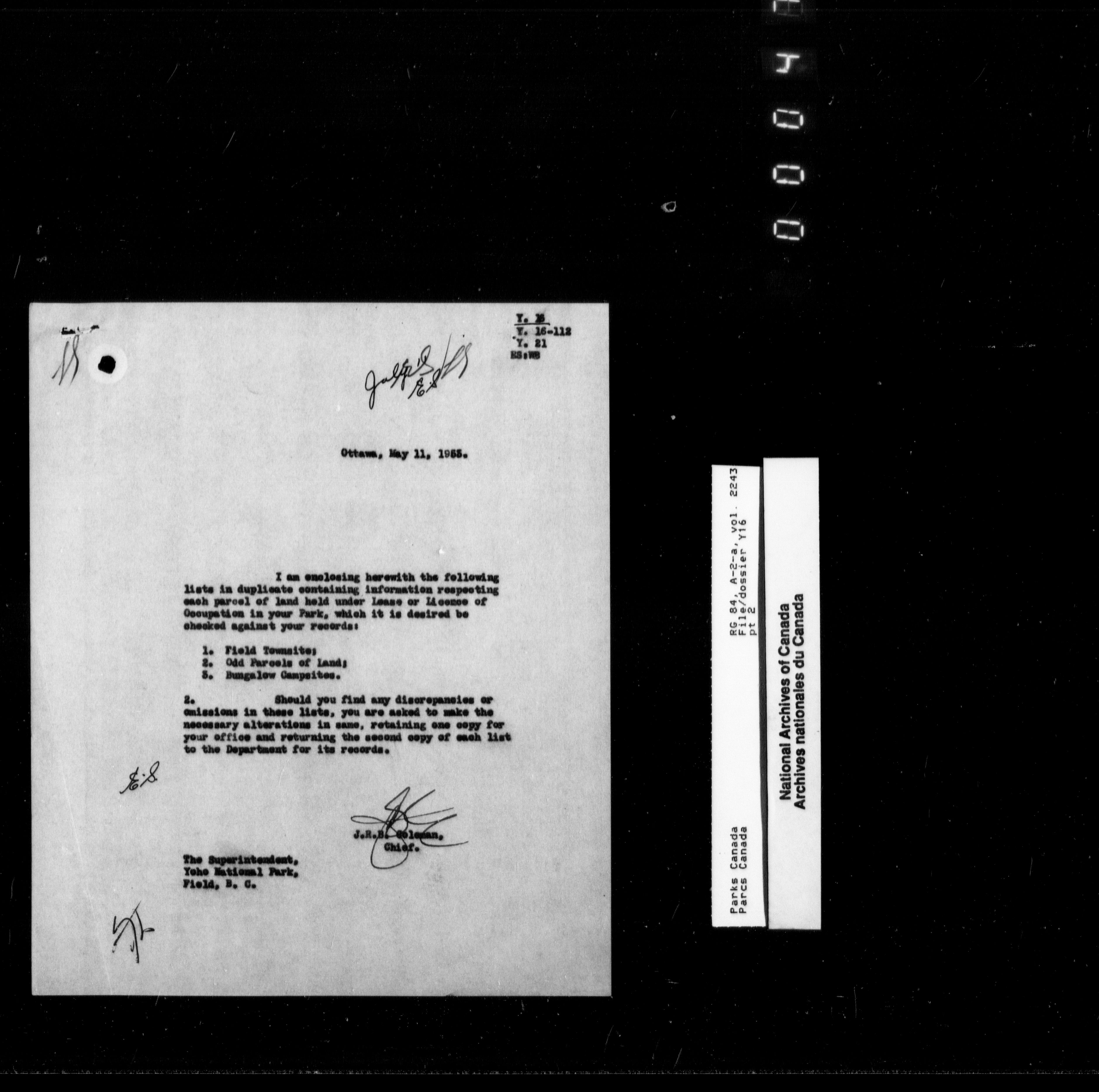 Department of Canadian Heritage, Canadian Parks Service : Park/subject classification system - 9890