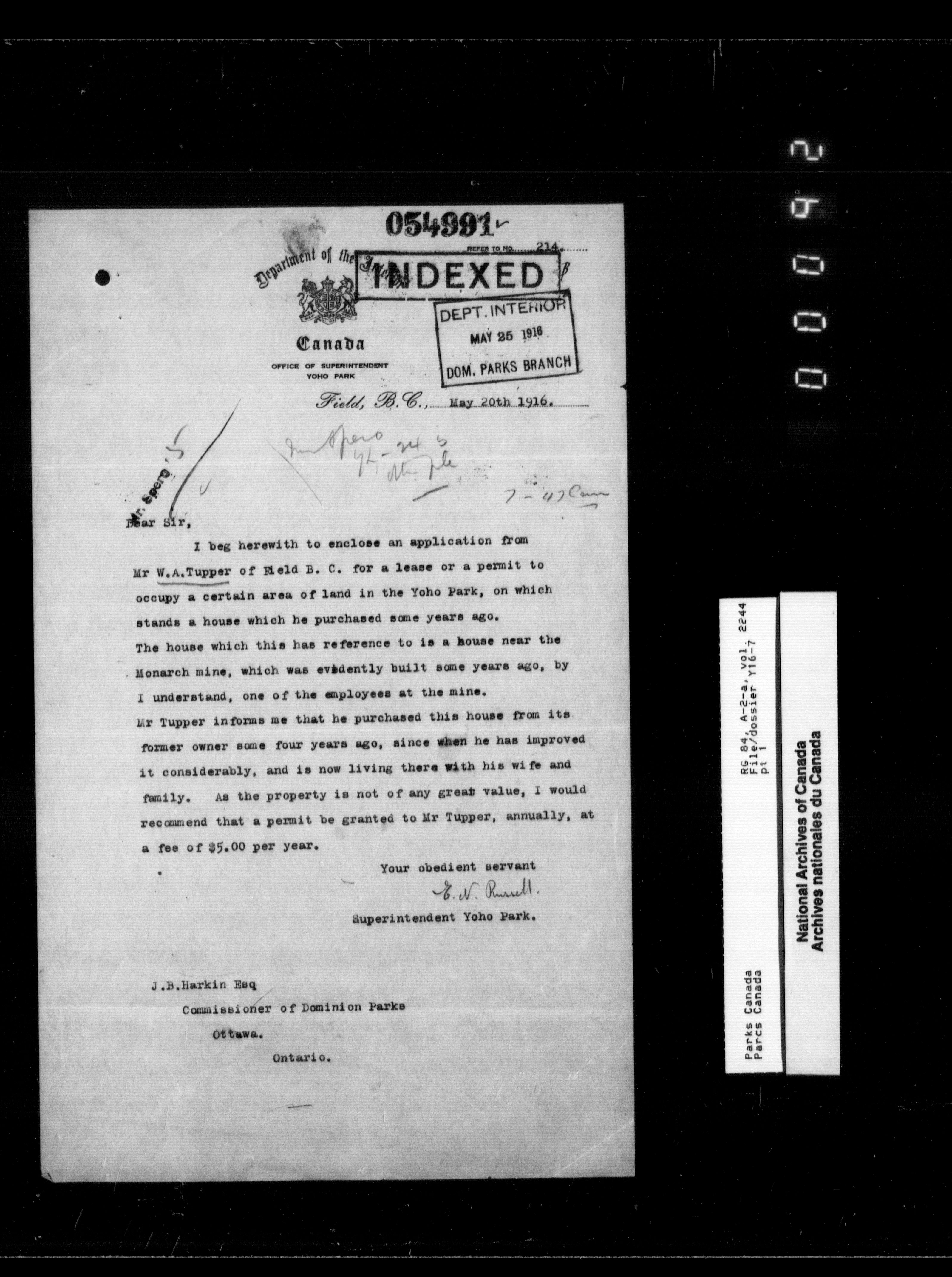 Department of Canadian Heritage, Canadian Parks Service : Park/subject classification system - 9891