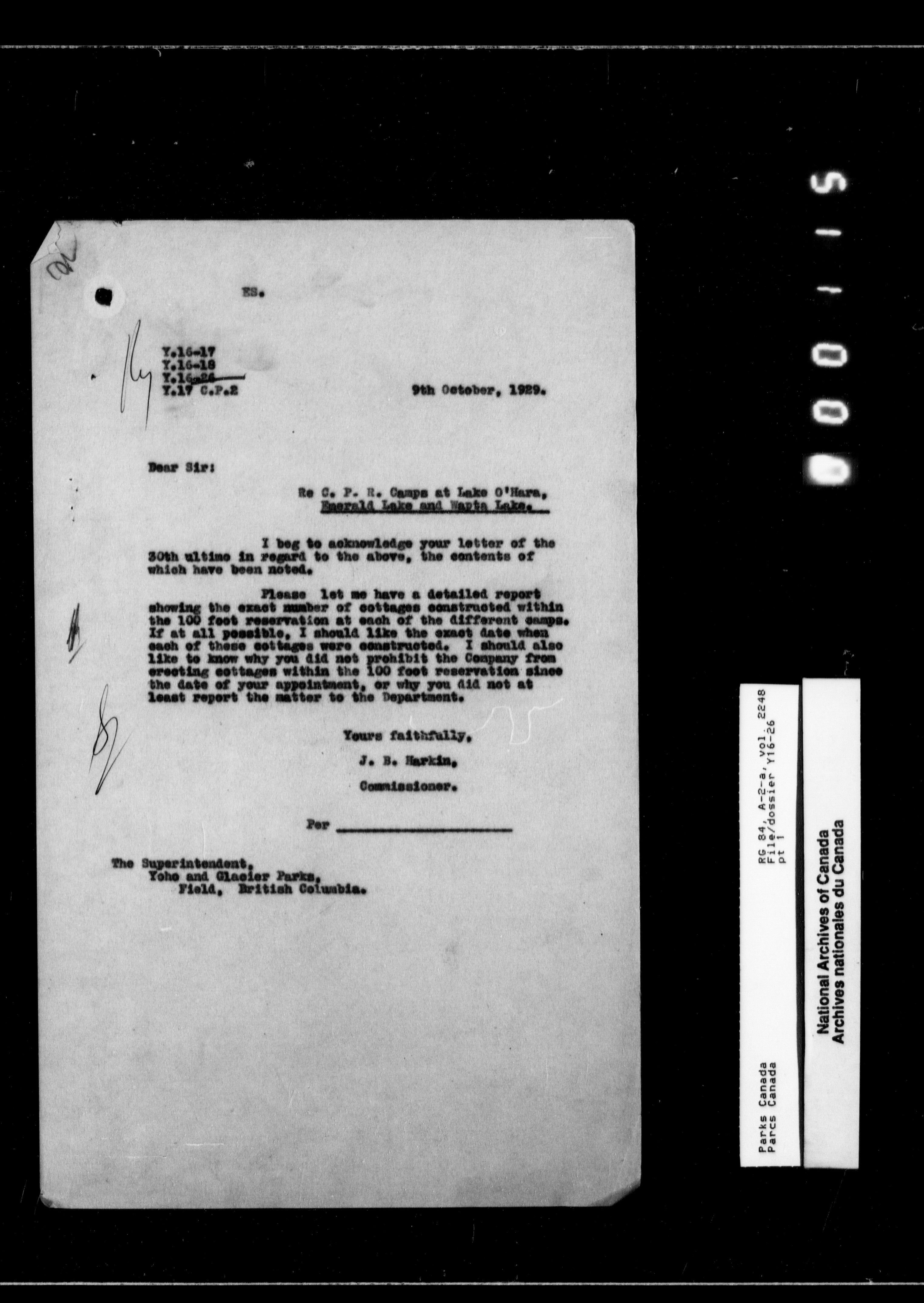 Department of Canadian Heritage, Canadian Parks Service : Park/subject classification system - 9895