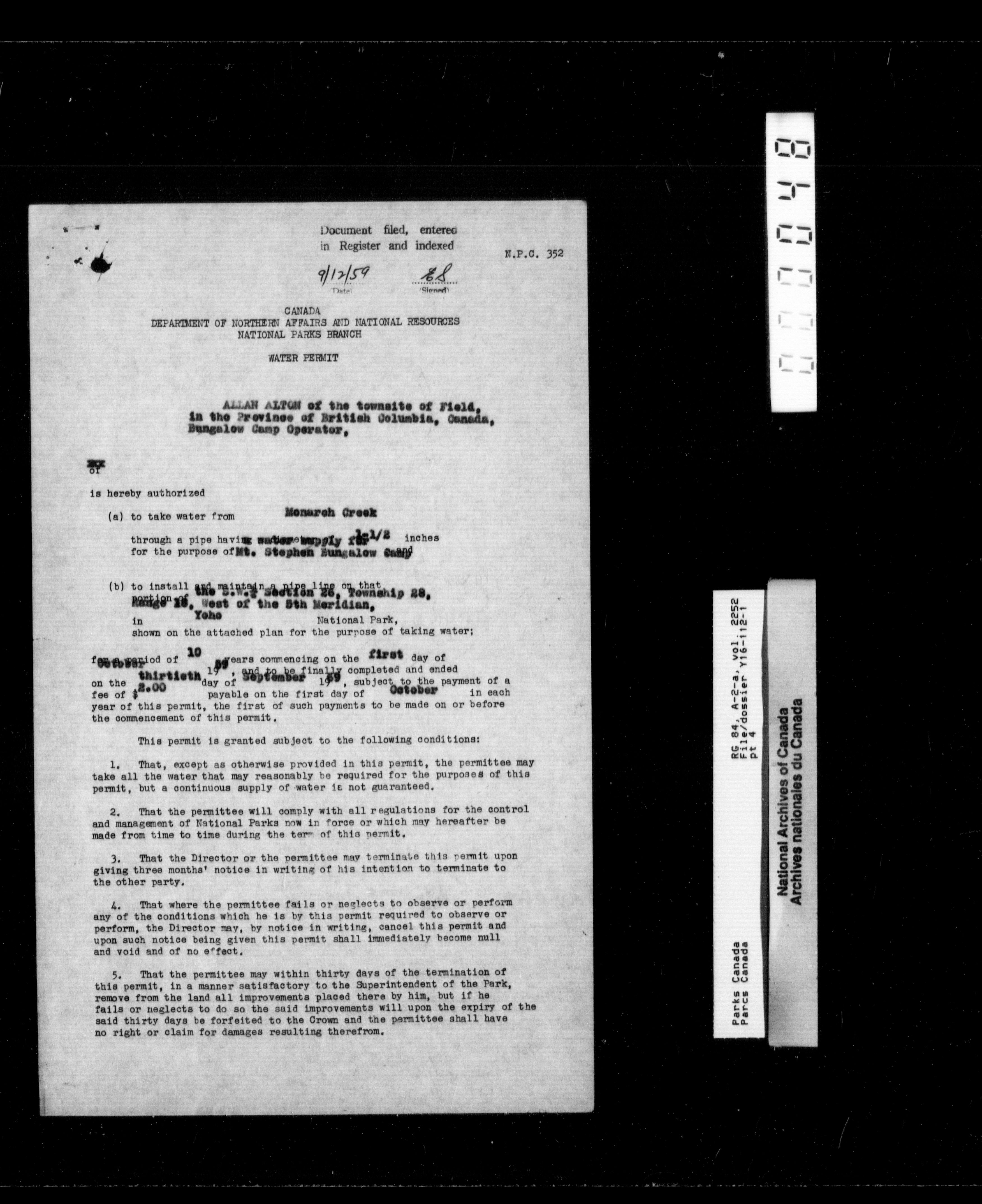 Department of Canadian Heritage, Canadian Parks Service : Park/subject classification system - 9899