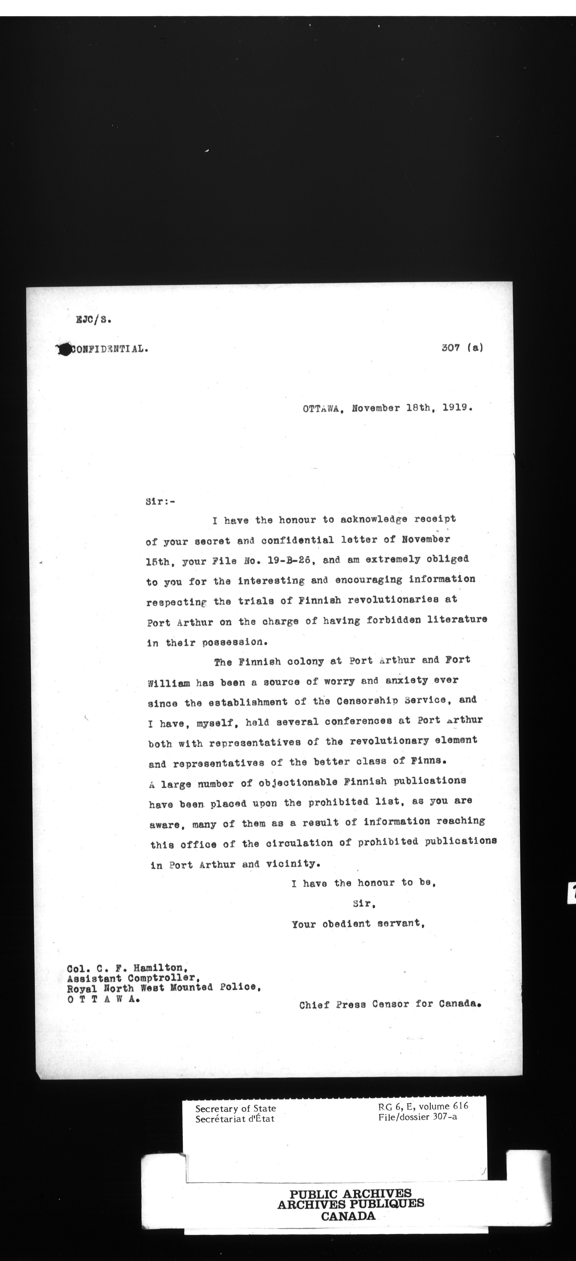 Secretary of State : Chief Press Censor, 1915-1920 - 99