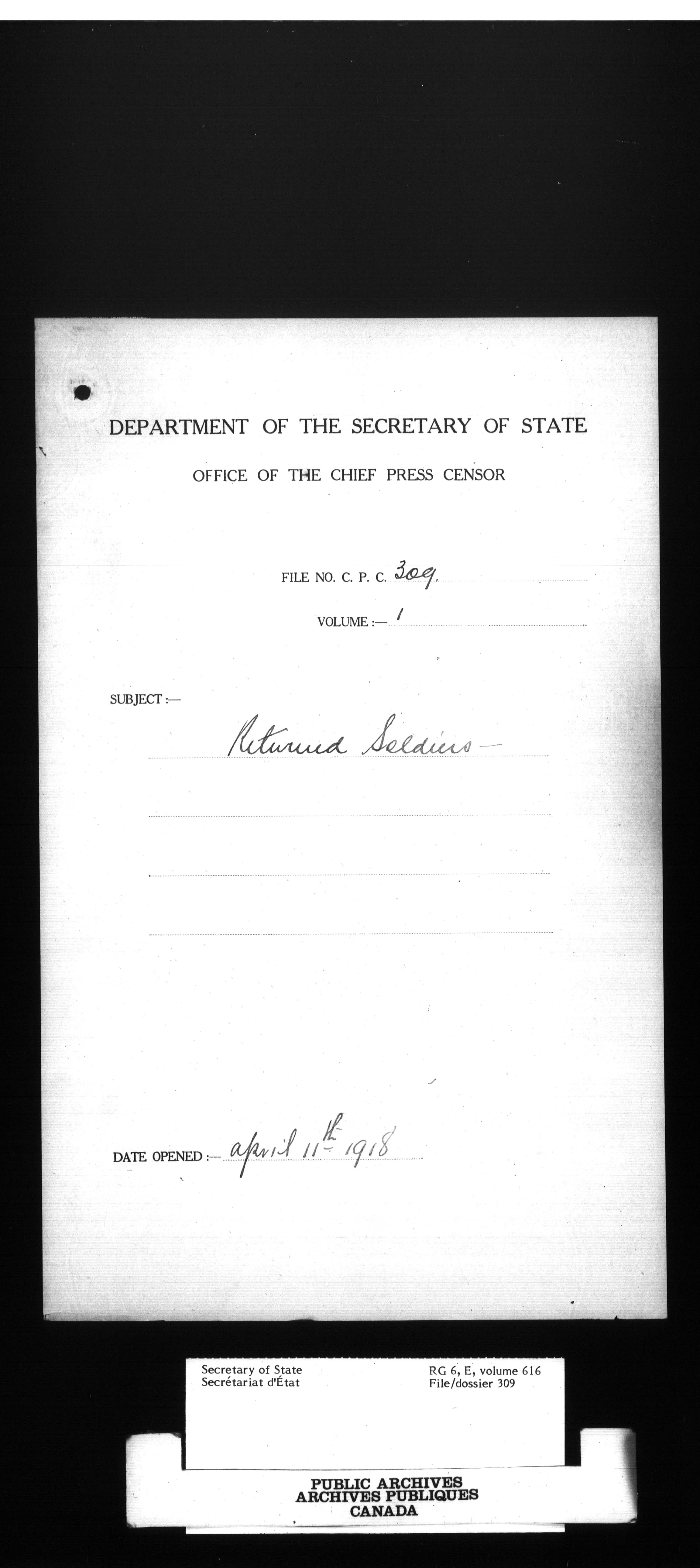 Secretary of State : Chief Press Censor, 1915-1920 - 99