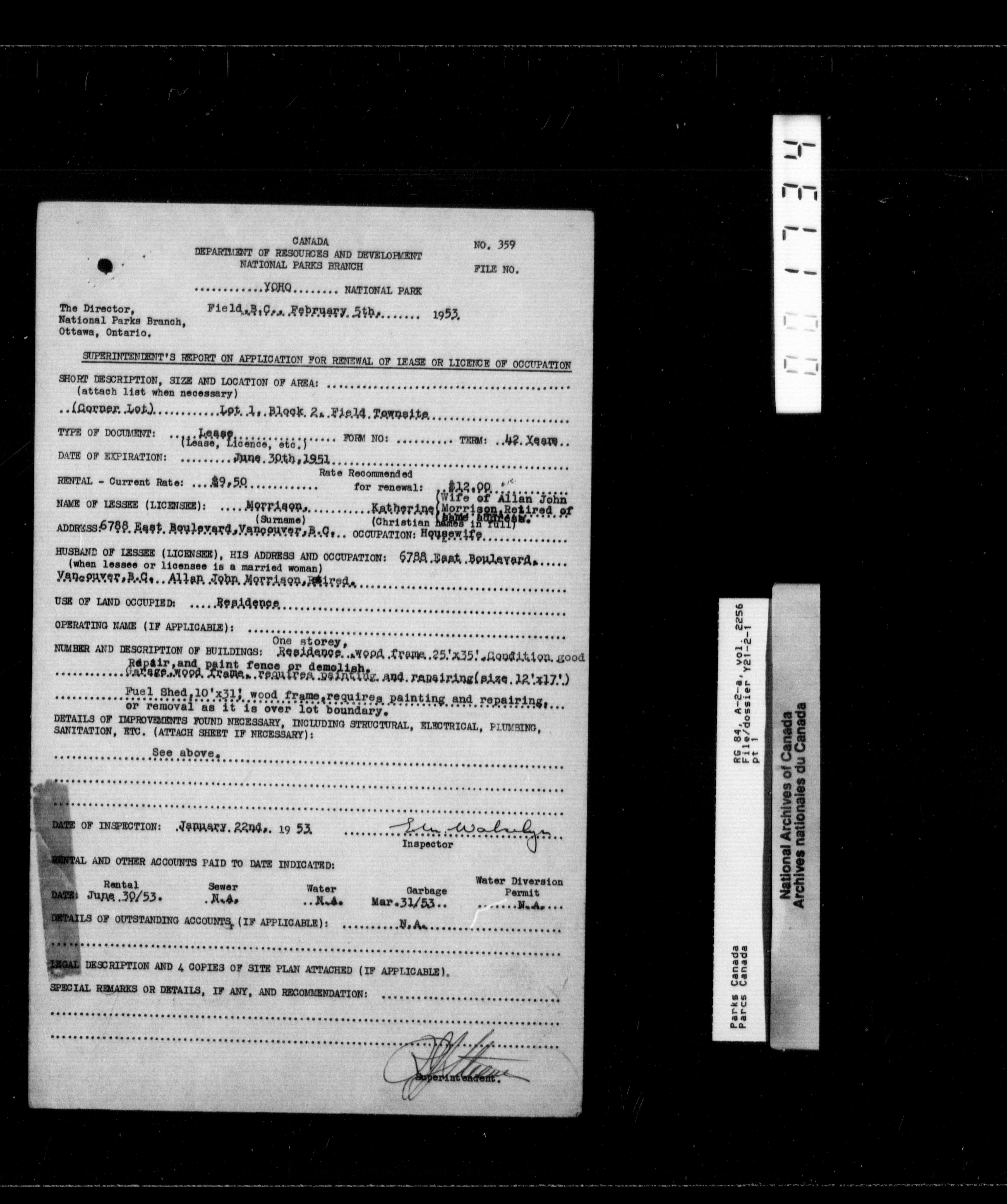 Department of Canadian Heritage, Canadian Parks Service : Park/subject classification system - 9902