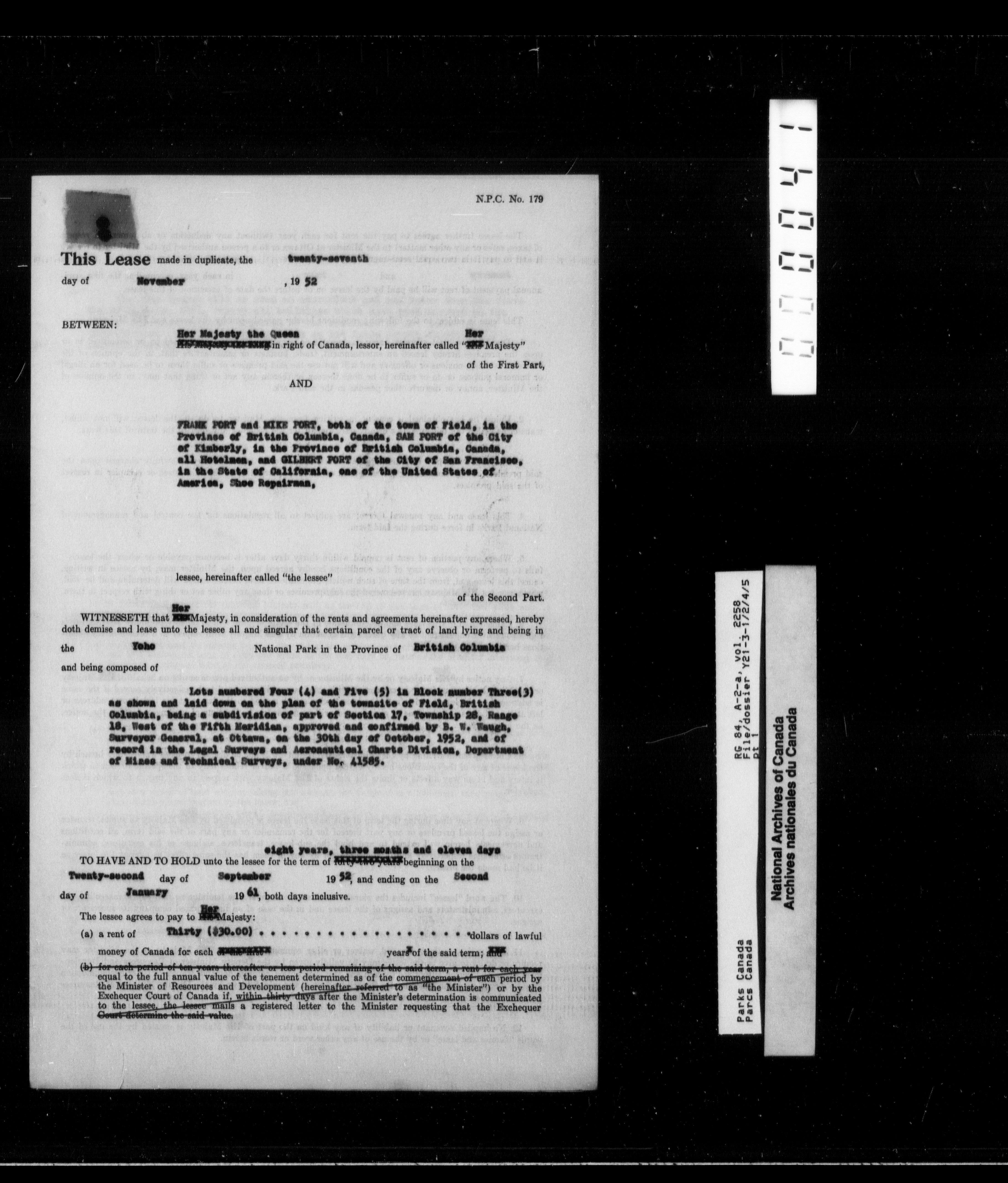 Department of Canadian Heritage, Canadian Parks Service : Park/subject classification system - 9904
