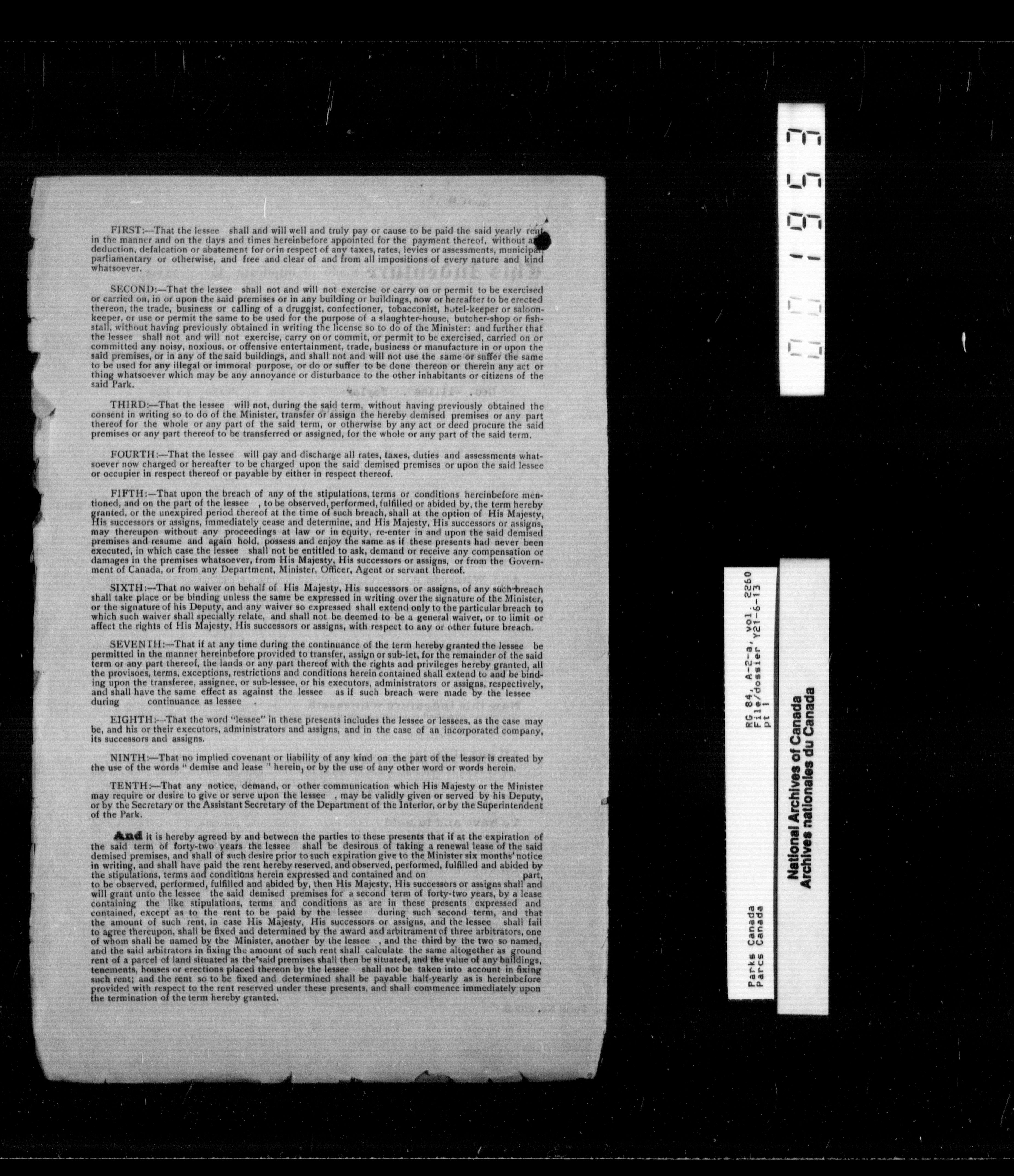 Department of Canadian Heritage, Canadian Parks Service : Park/subject classification system : T-9905