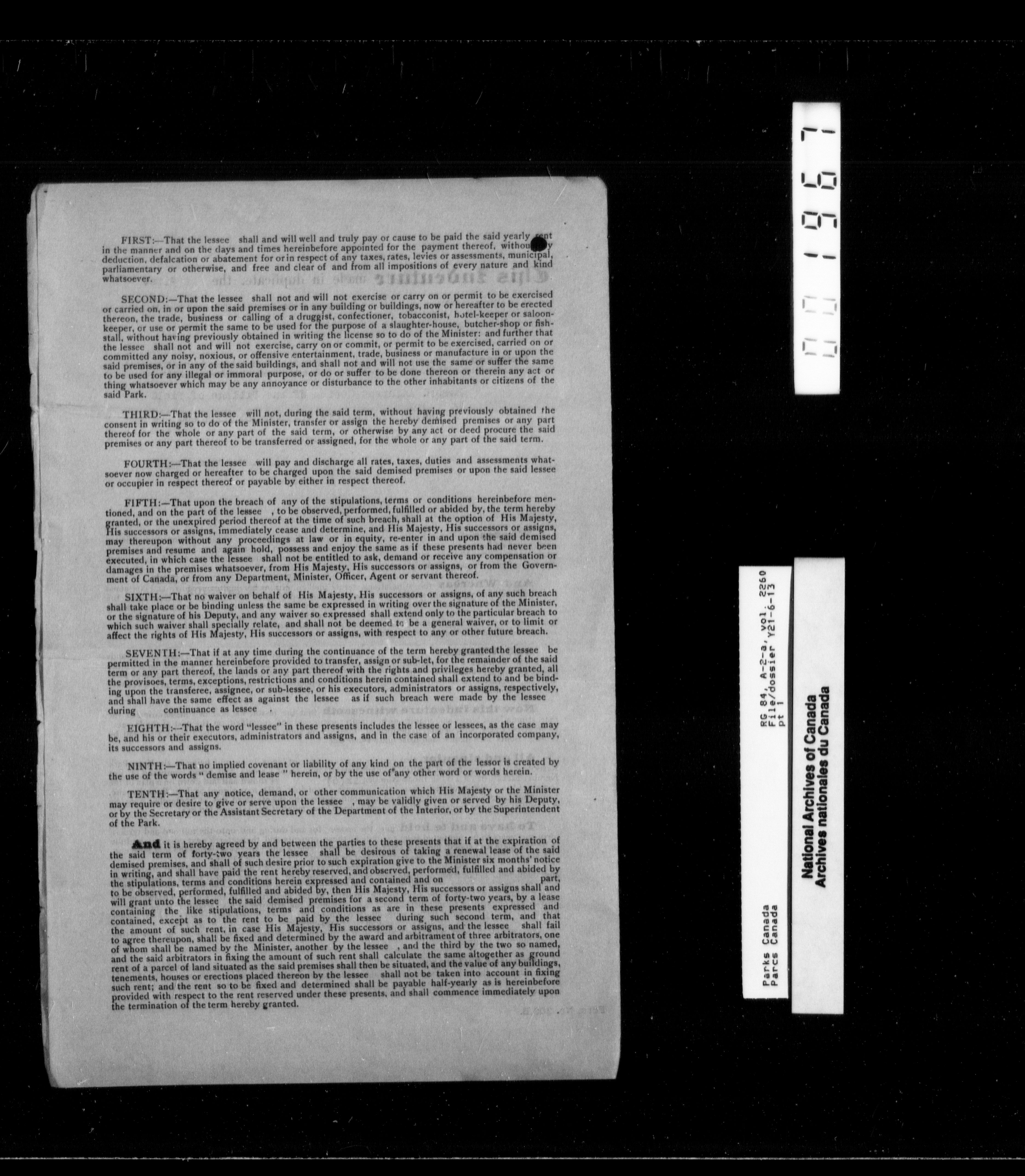 Department of Canadian Heritage, Canadian Parks Service : Park/subject classification system : T-9905