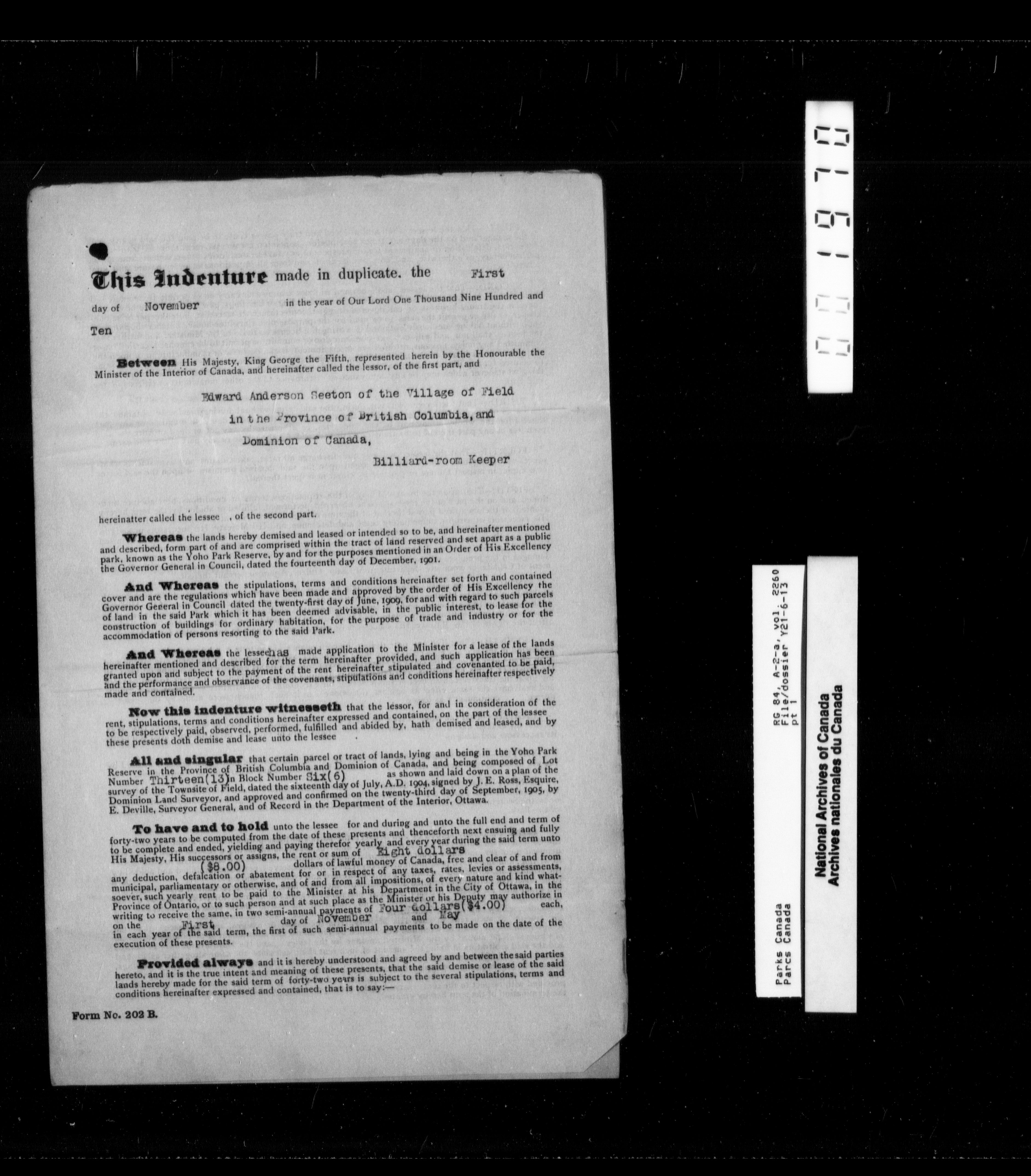 Department of Canadian Heritage, Canadian Parks Service : Park/subject classification system - 9905