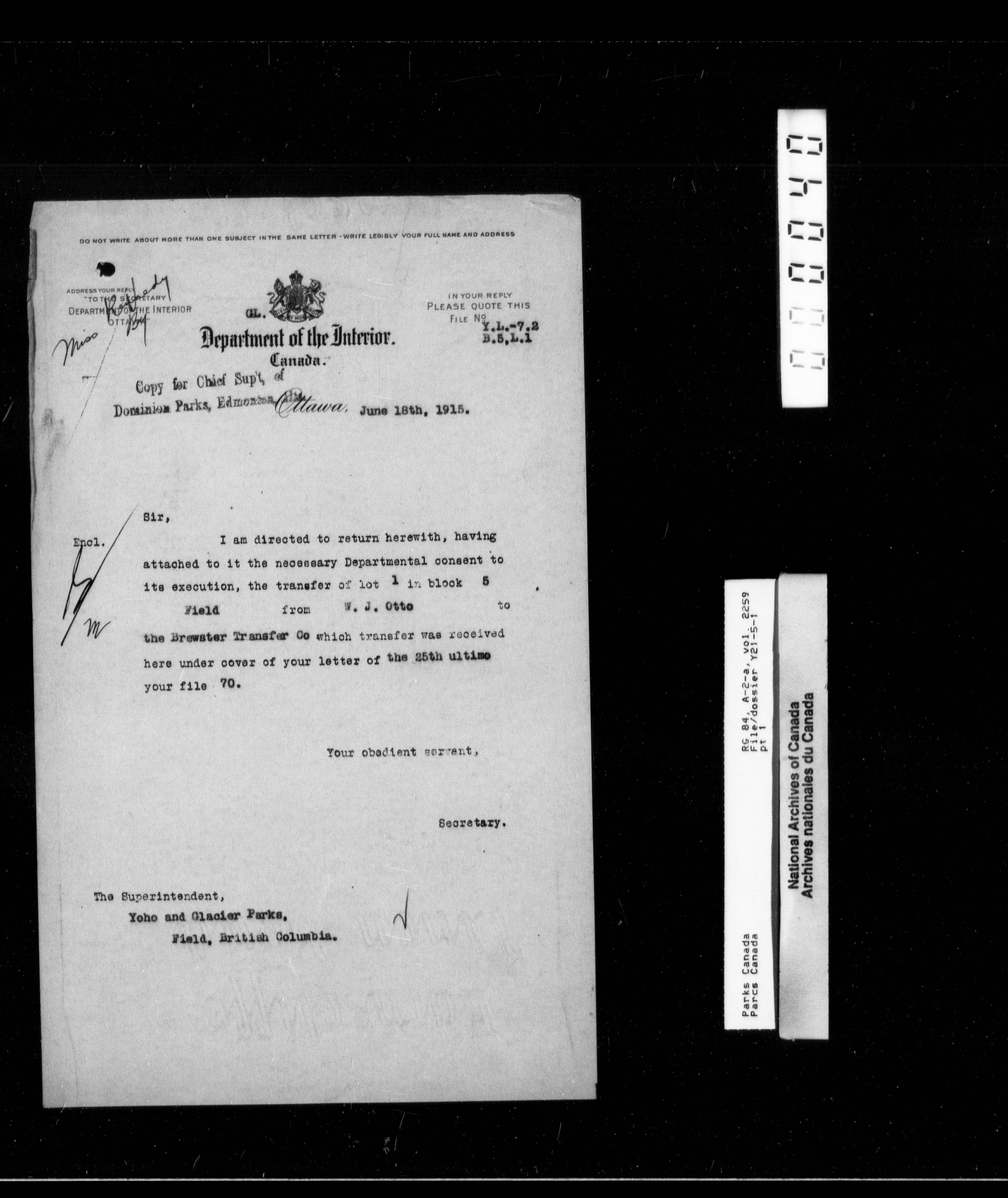Department of Canadian Heritage, Canadian Parks Service : Park/subject classification system - 9905