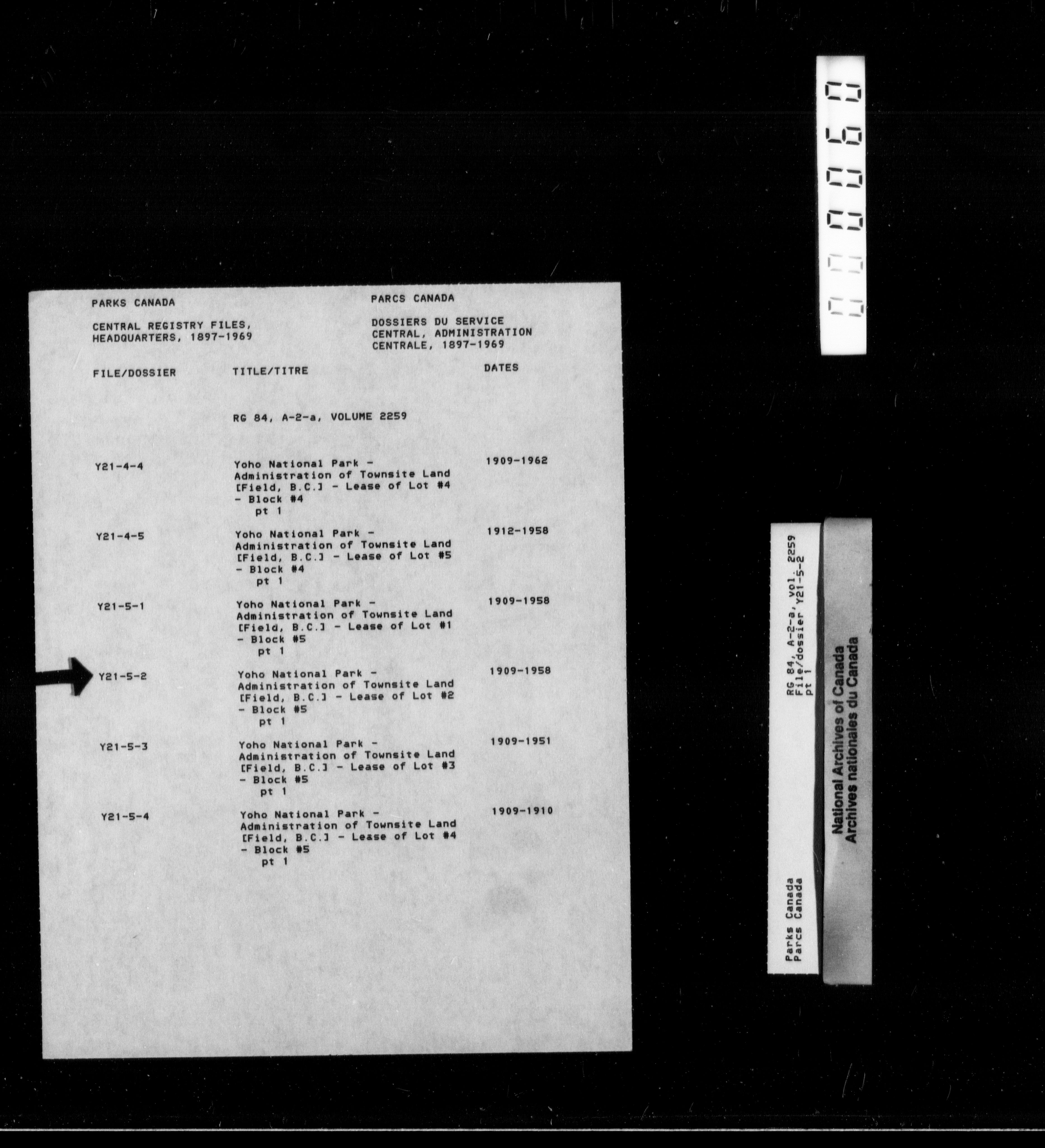 Department of Canadian Heritage, Canadian Parks Service : Park/subject classification system - 9905