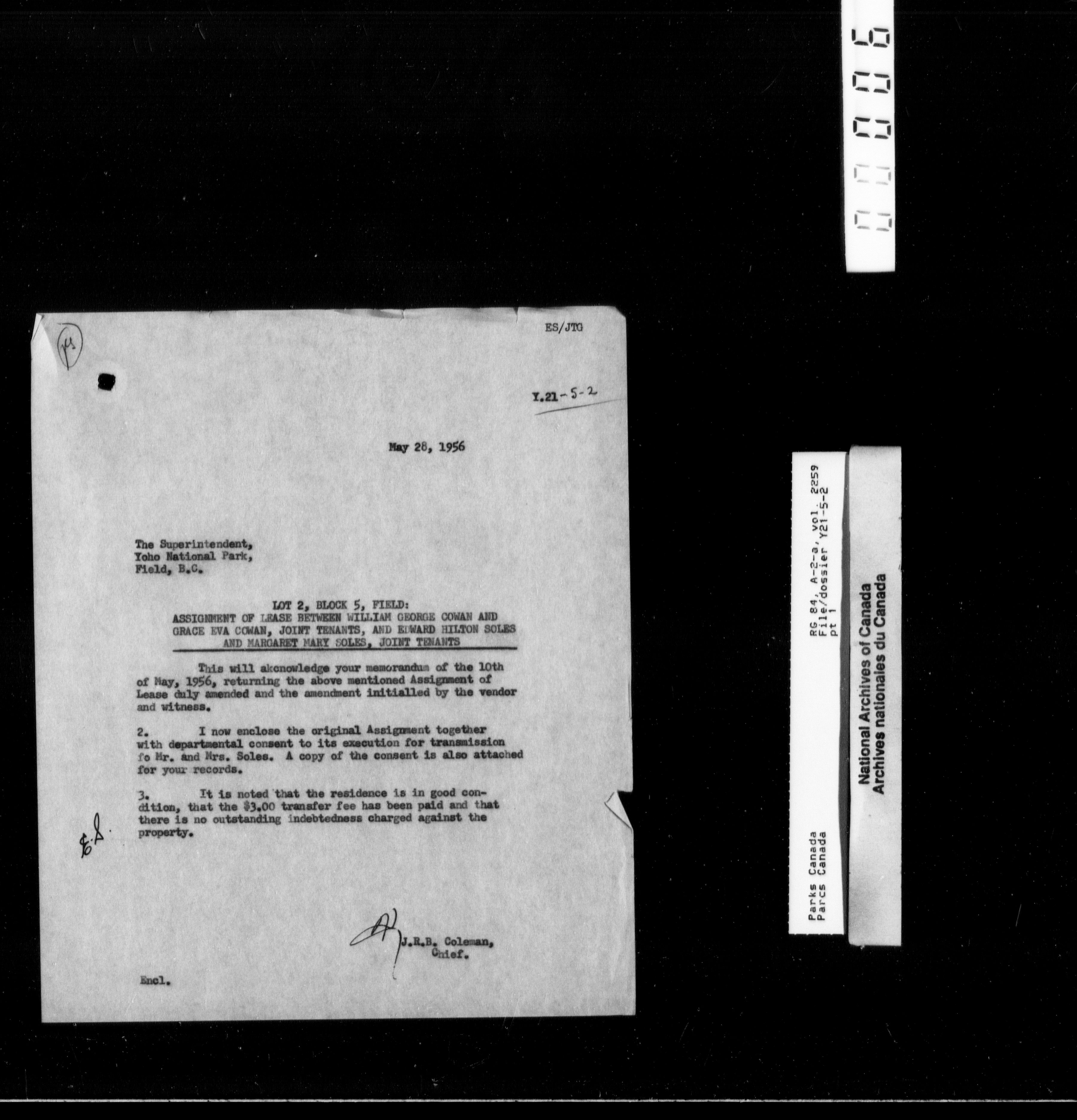 Department of Canadian Heritage, Canadian Parks Service : Park/subject classification system : T-9905