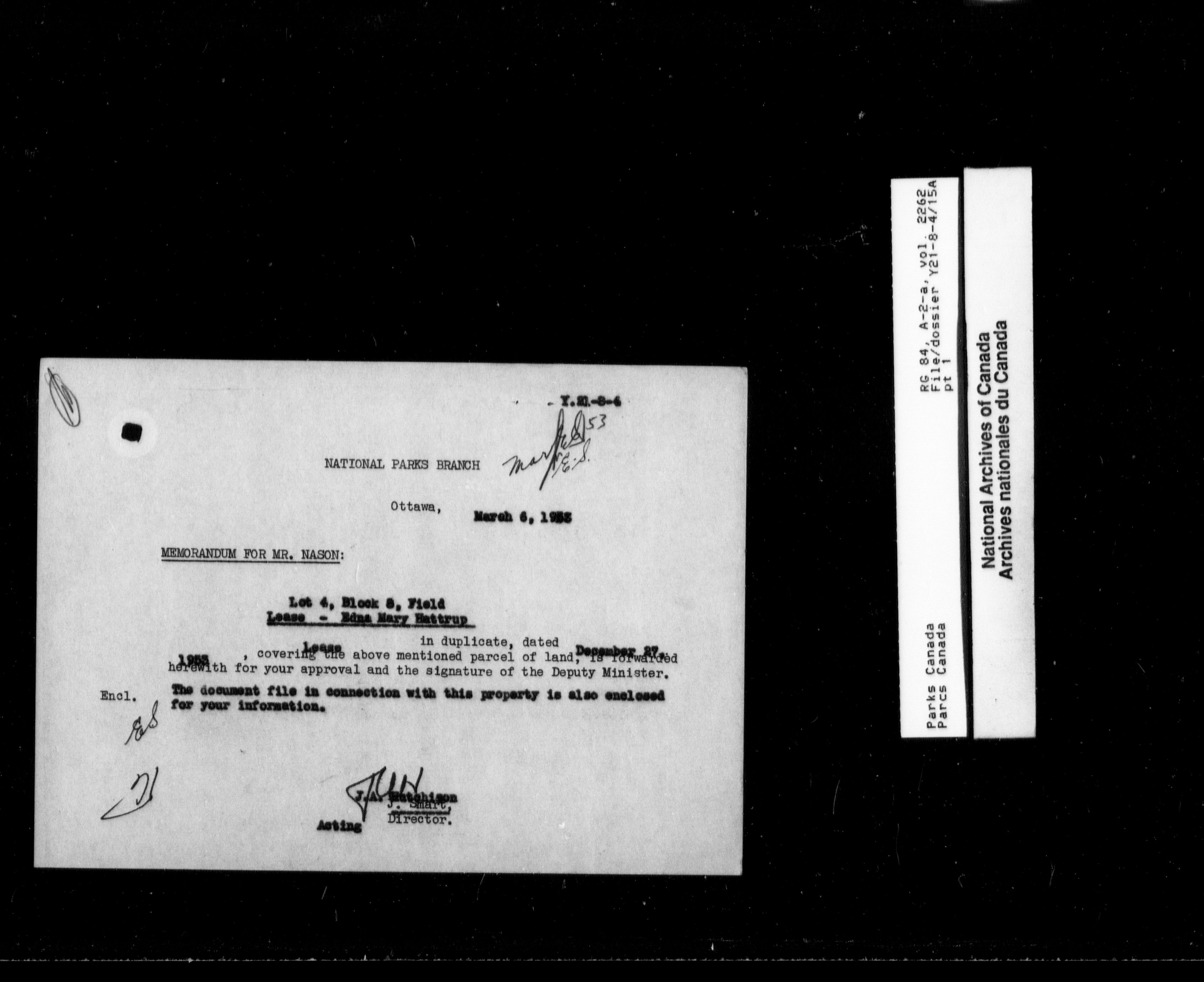 Department of Canadian Heritage, Canadian Parks Service : Park/subject classification system - 9907
