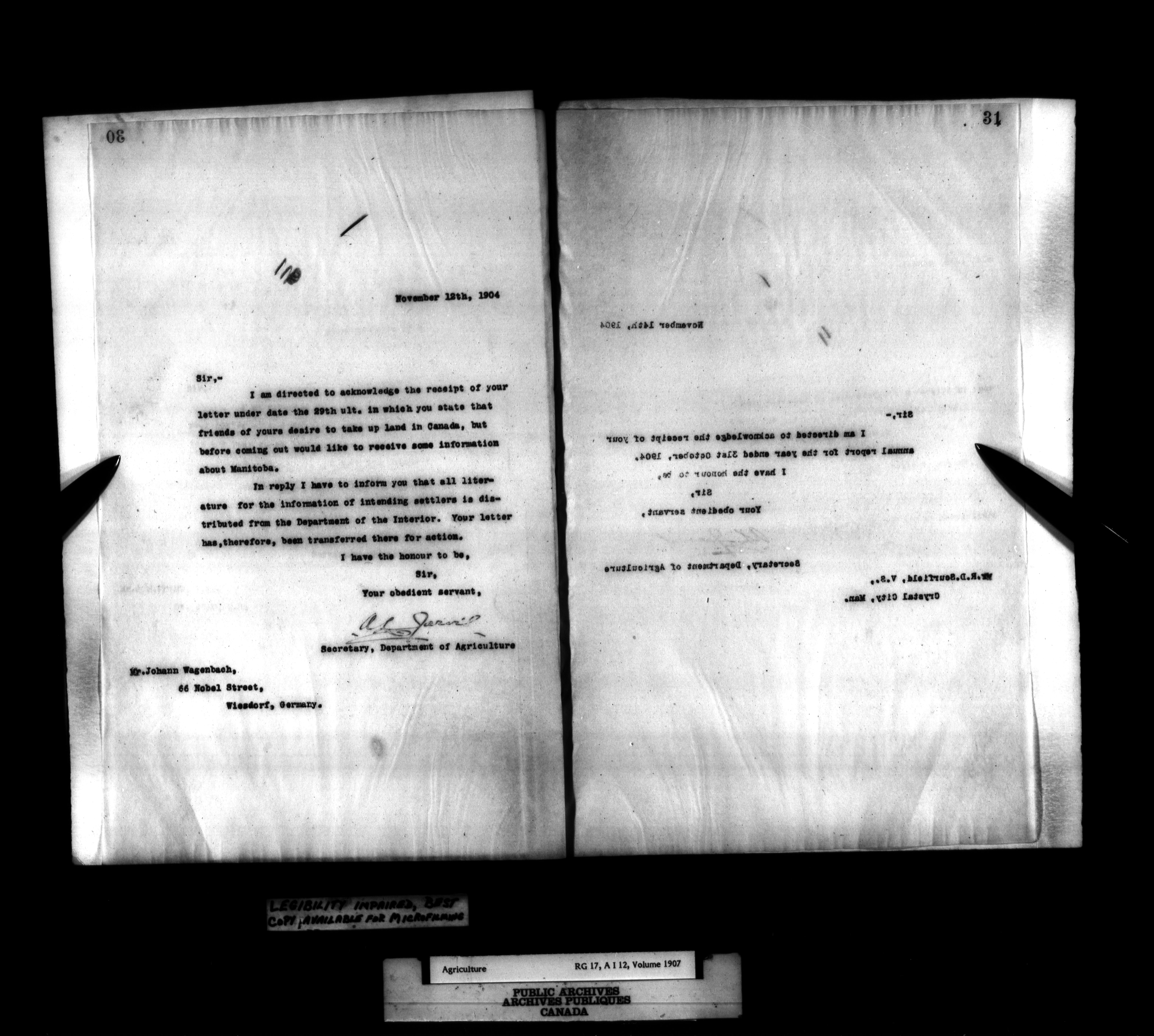 Department of Agriculture : Secretary and Assistant Deputy Minister's letterbooks, 1881-1916 - 991