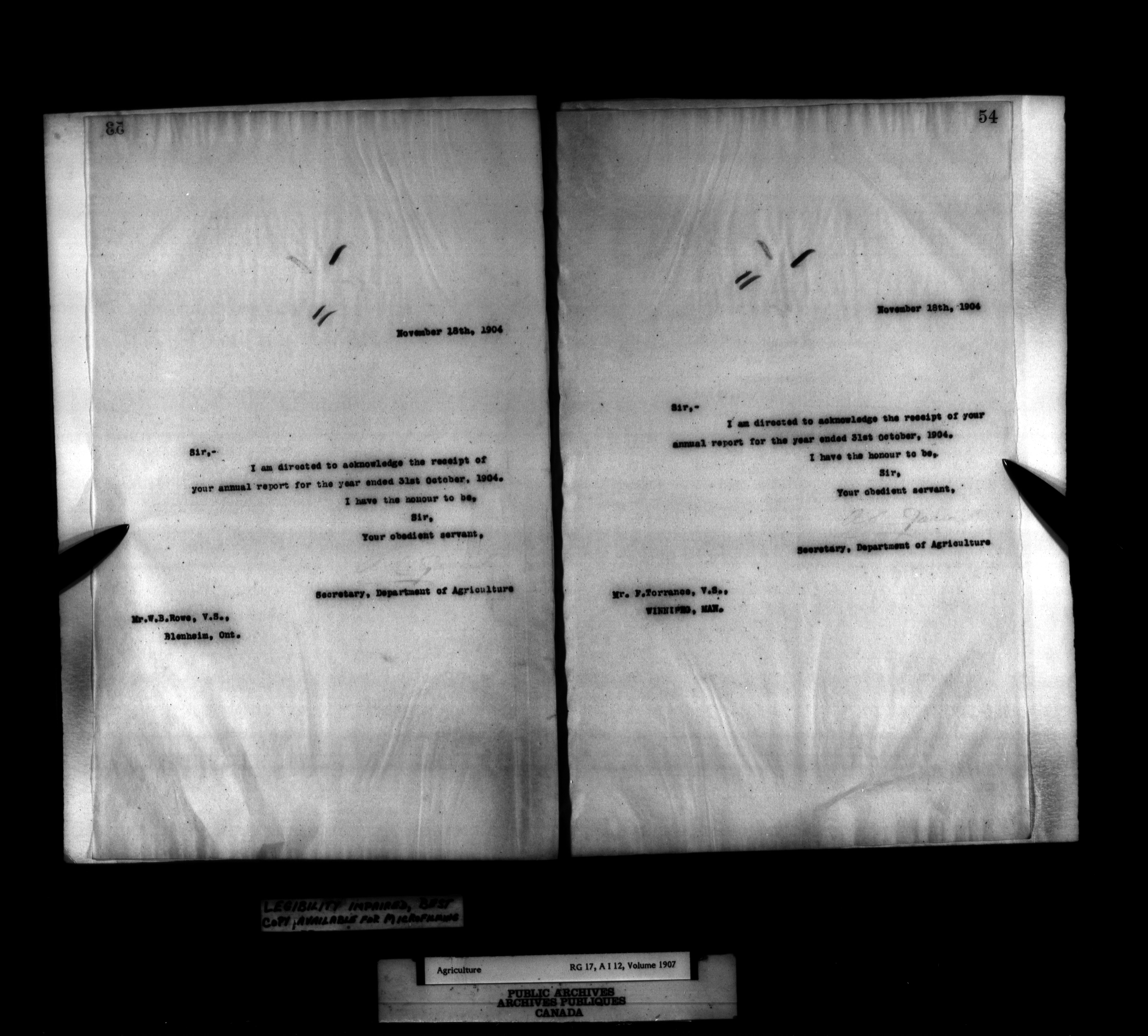 Department of Agriculture : Secretary and Assistant Deputy Minister's letterbooks, 1881-1916 - 991
