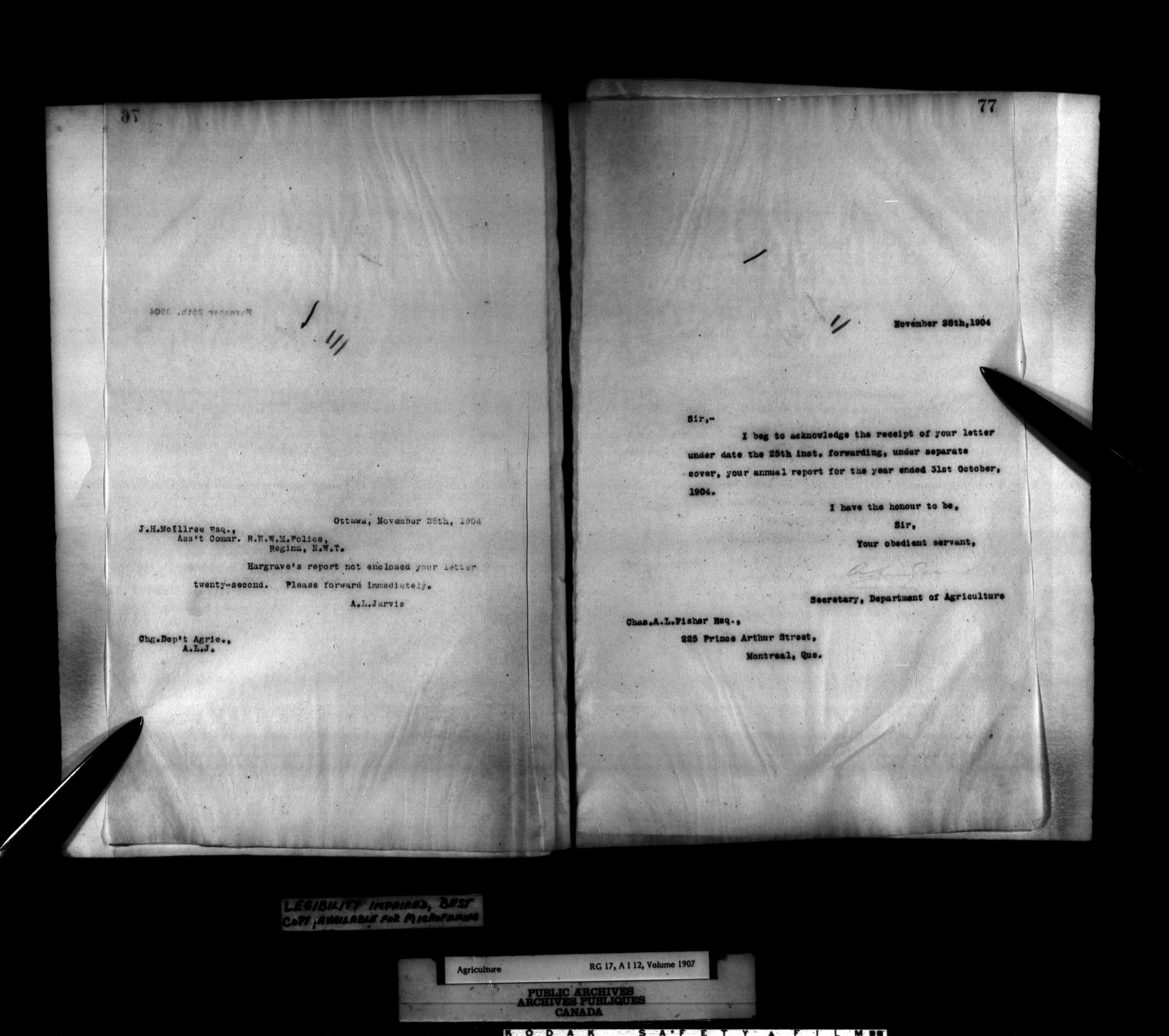Department of Agriculture : Secretary and Assistant Deputy Minister's letterbooks, 1881-1916 - 991