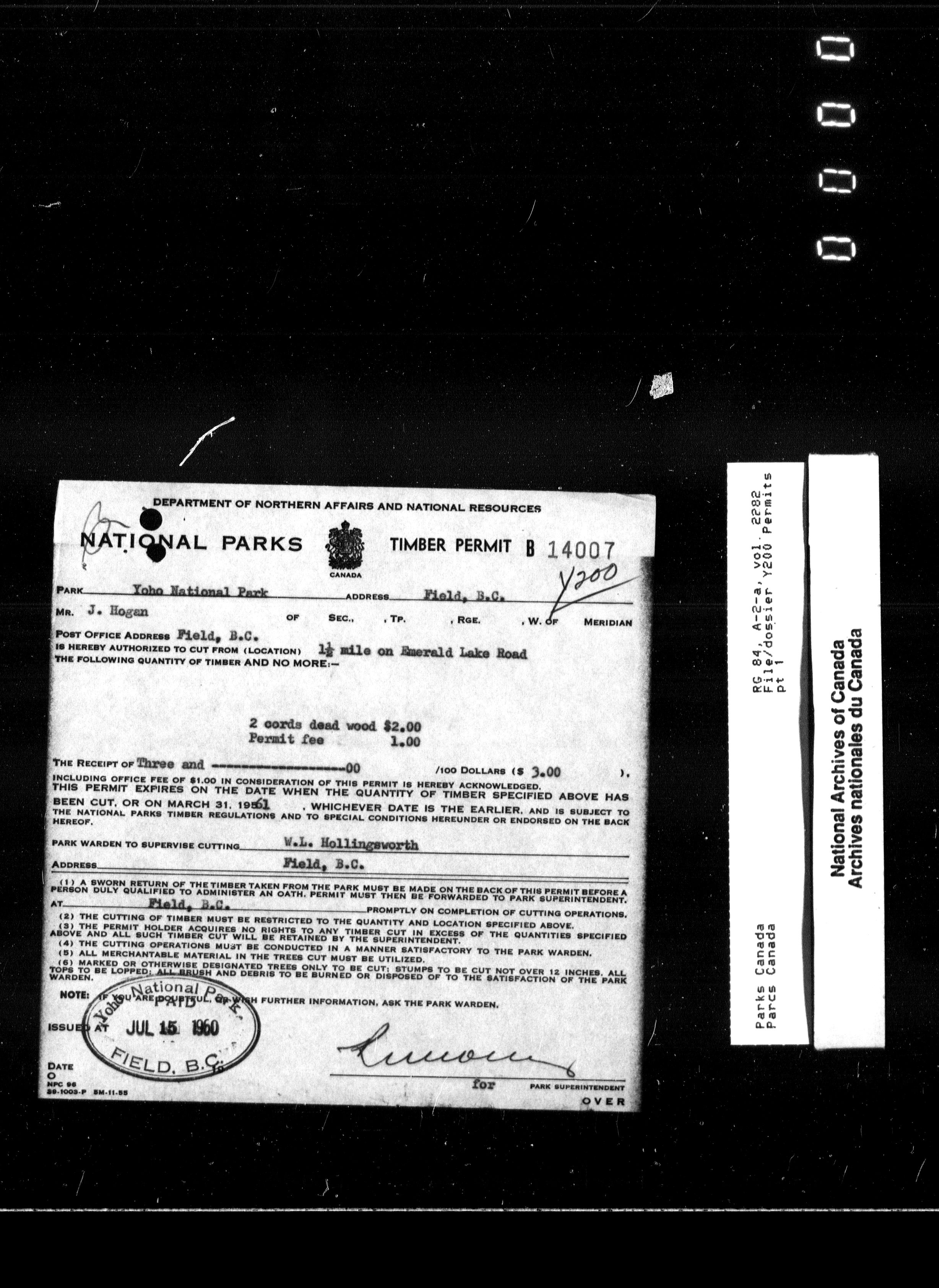 Department of Canadian Heritage, Canadian Parks Service : Park/subject classification system - 9915