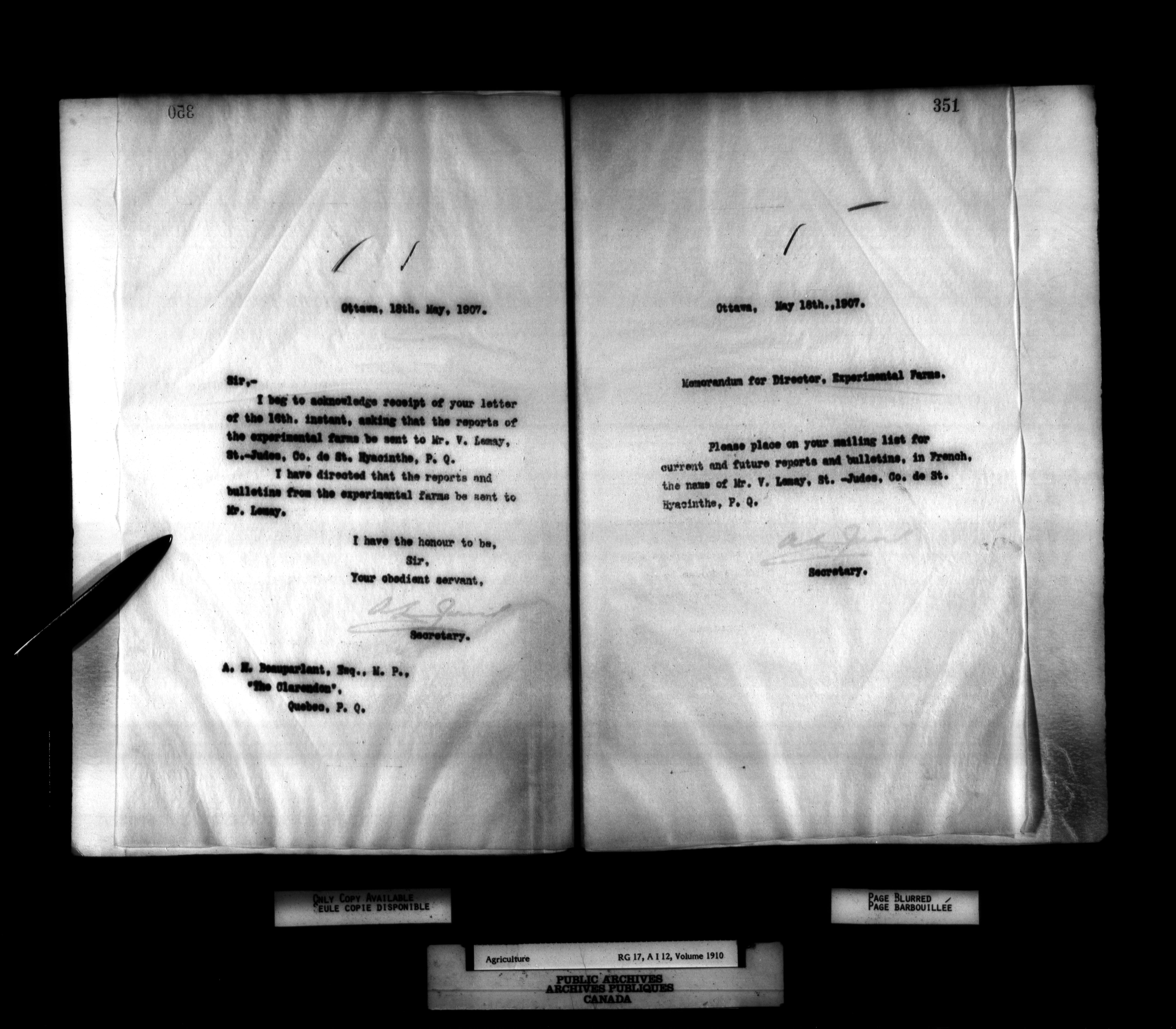 Department of Agriculture : Secretary and Assistant Deputy Minister's letterbooks, 1881-1916 - 992