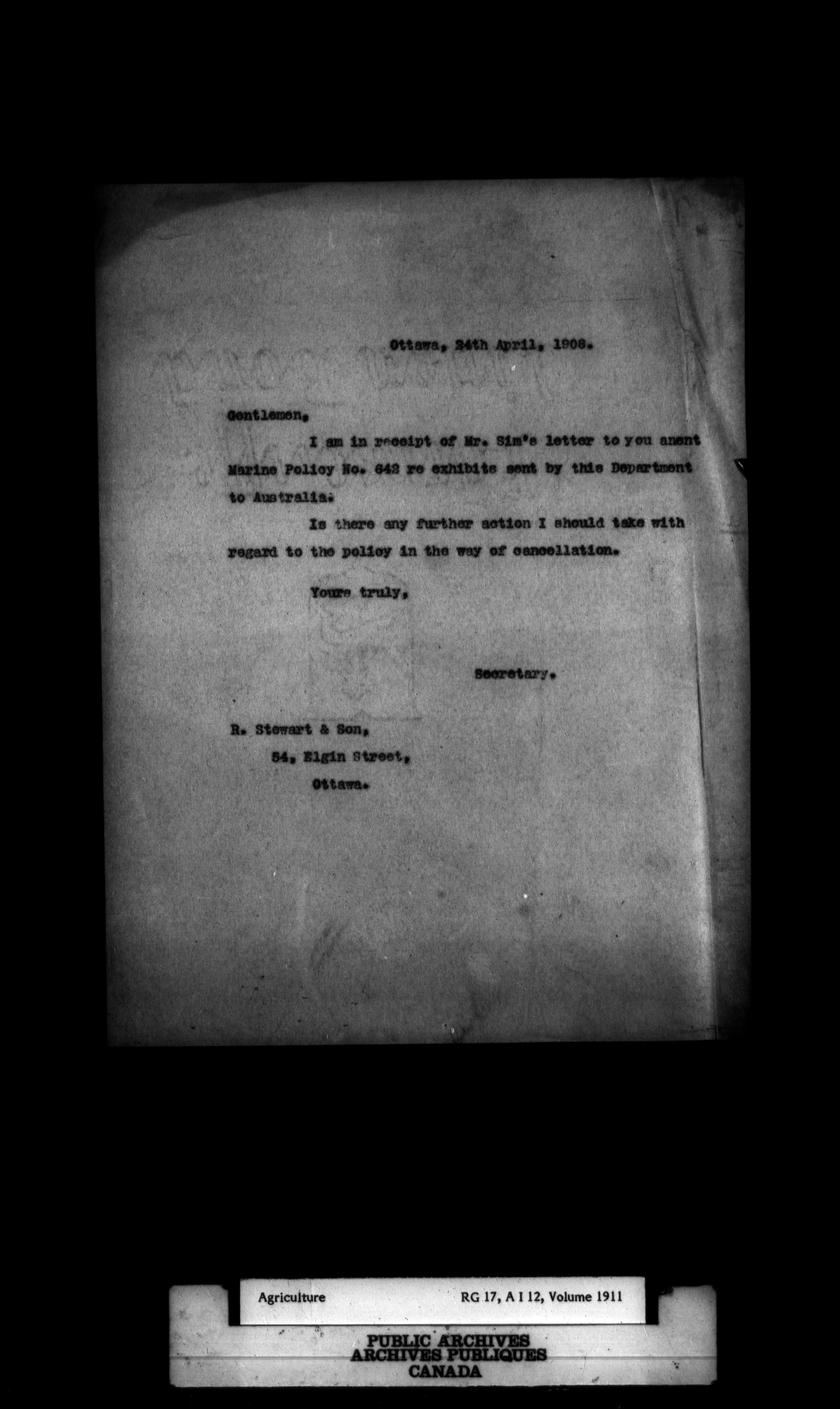 Department of Agriculture : Secretary and Assistant Deputy Minister's letterbooks, 1881-1916 : T-993
