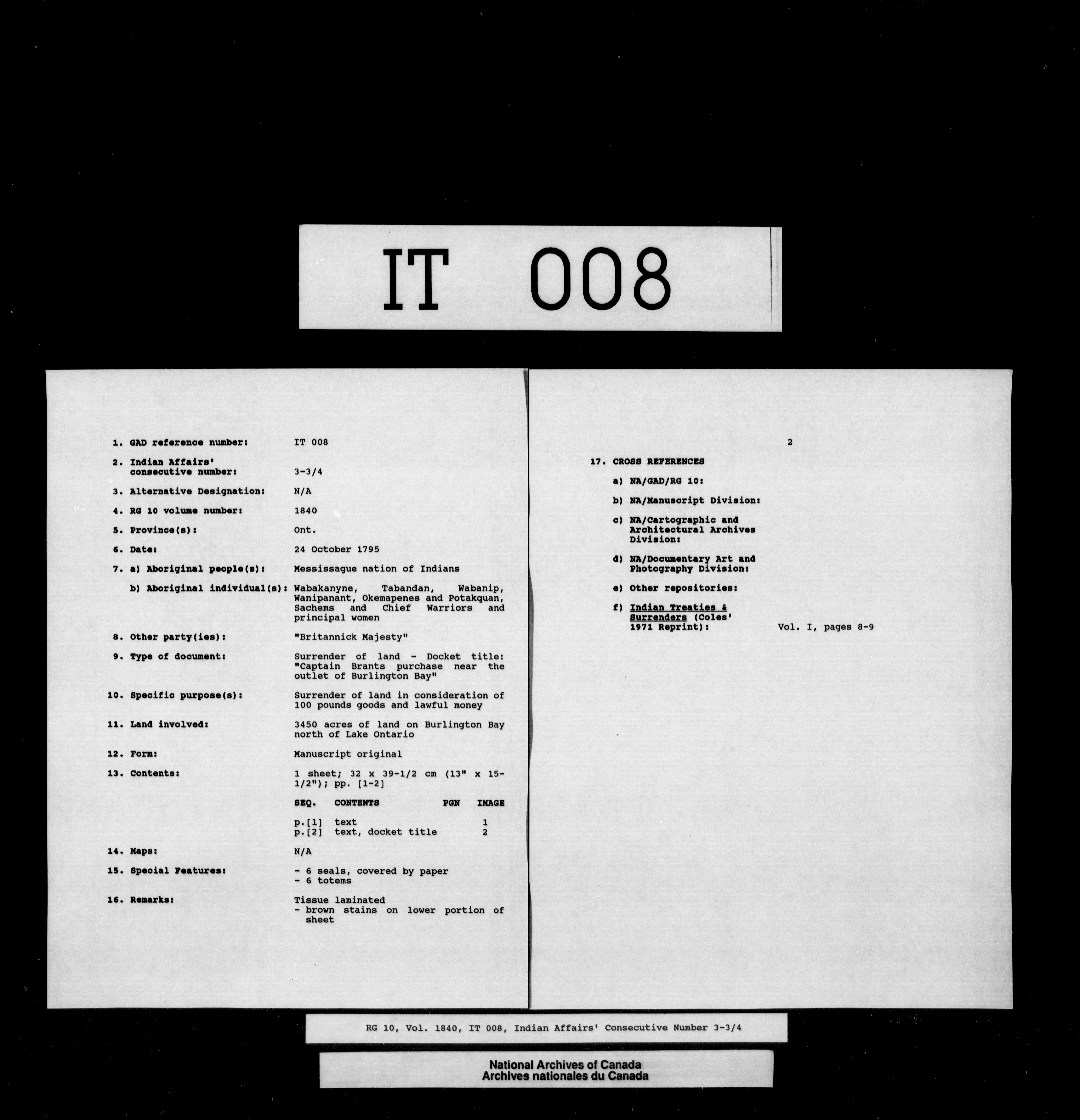 Department of Indian Affairs : treaties, surrenders and agreements : T-9938
