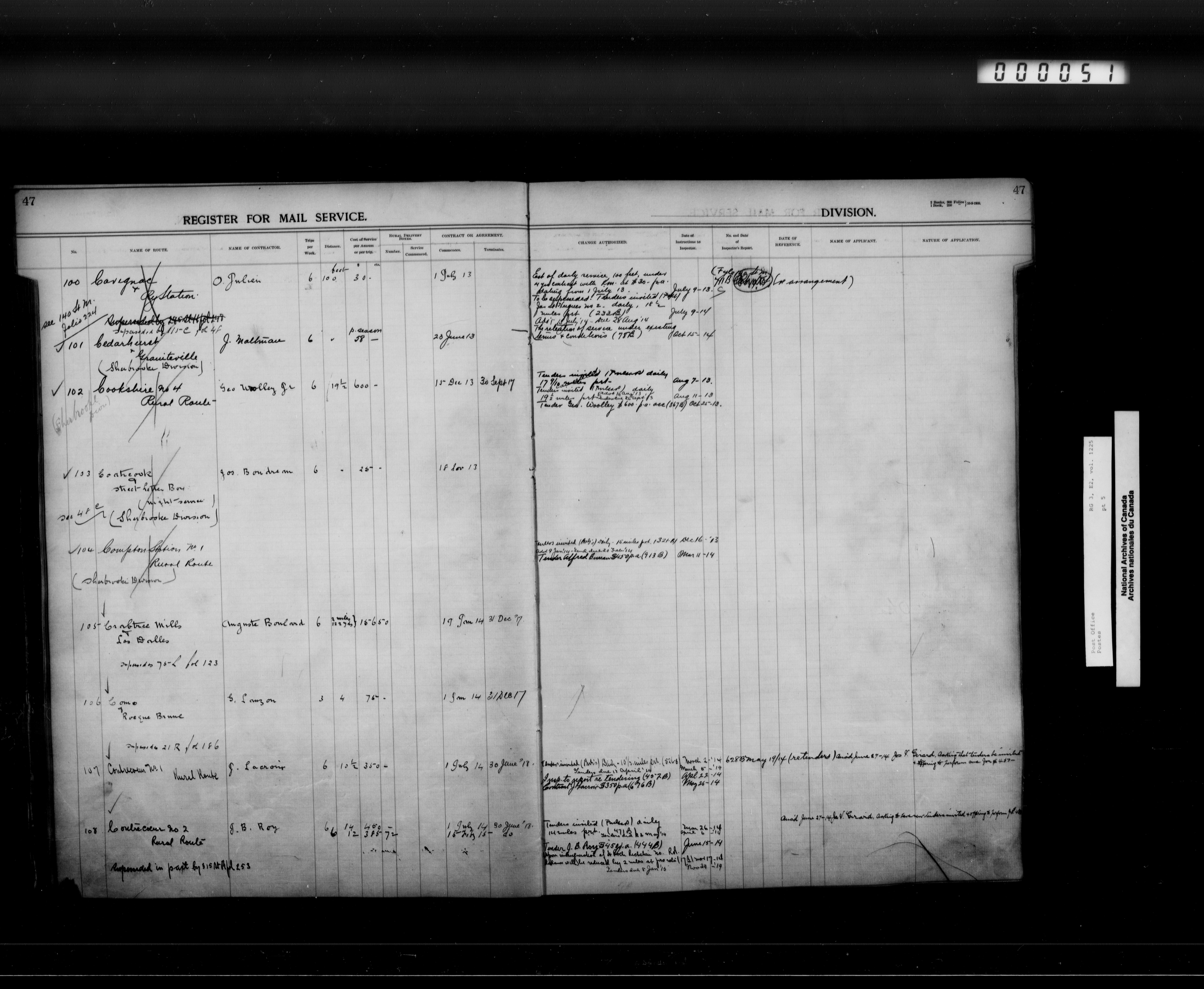 Post Office Department, Transportation Branch : Mail service contract registers, 1839-1980 - 9942