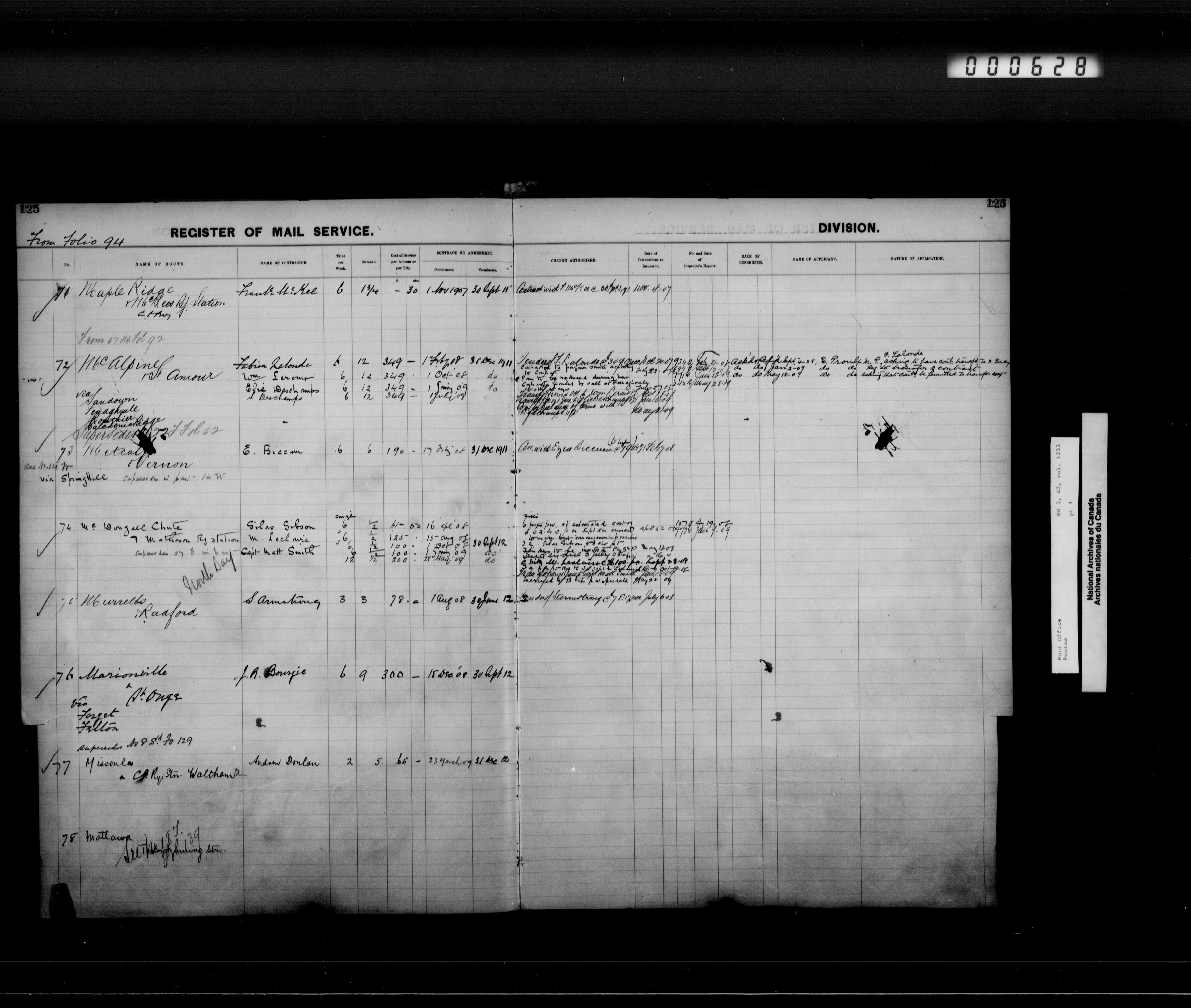 Post Office Department, Transportation Branch : Mail service contract registers, 1839-1980 - 9943