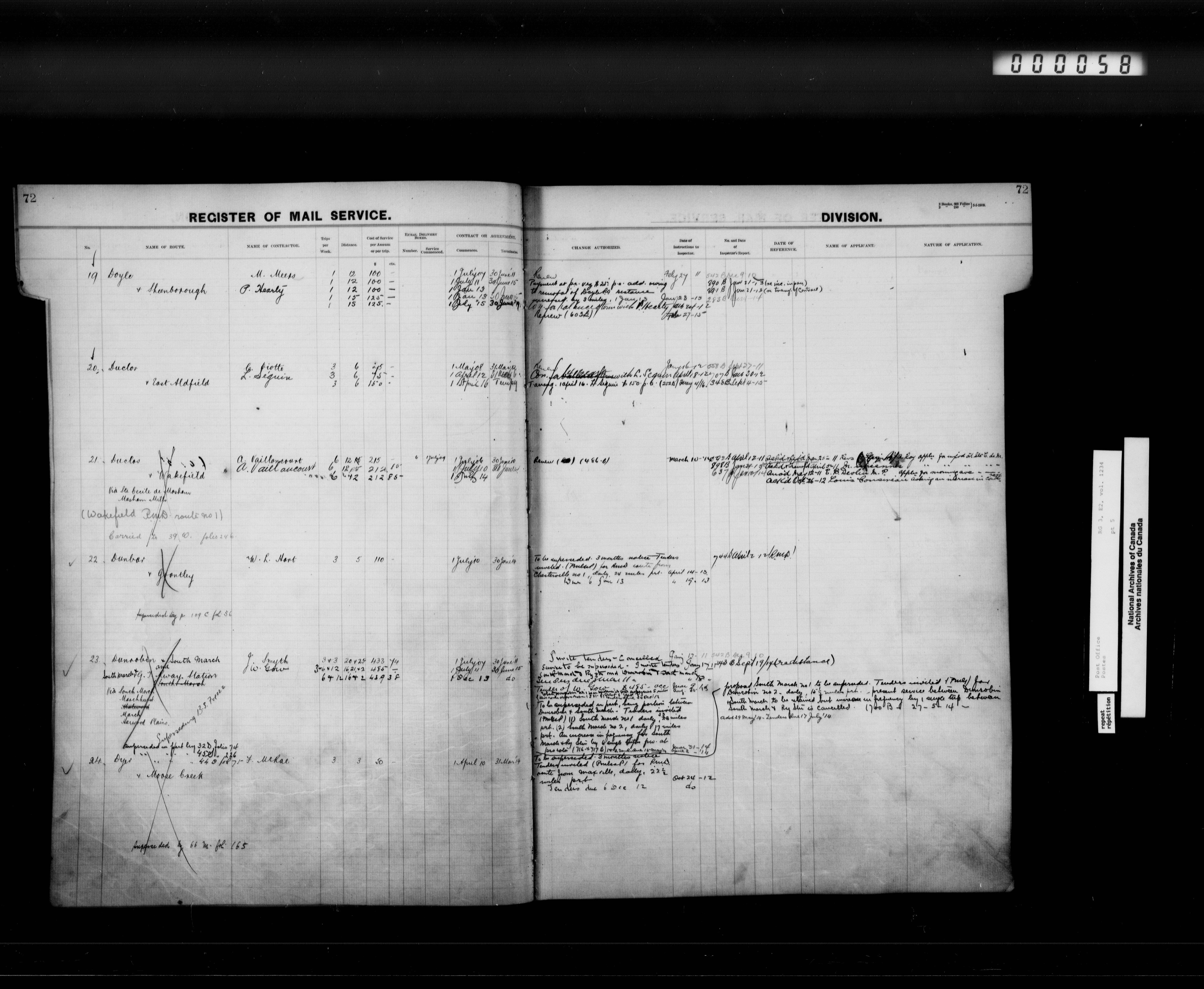 Post Office Department, Transportation Branch : Mail service contract registers, 1839-1980 - 9944