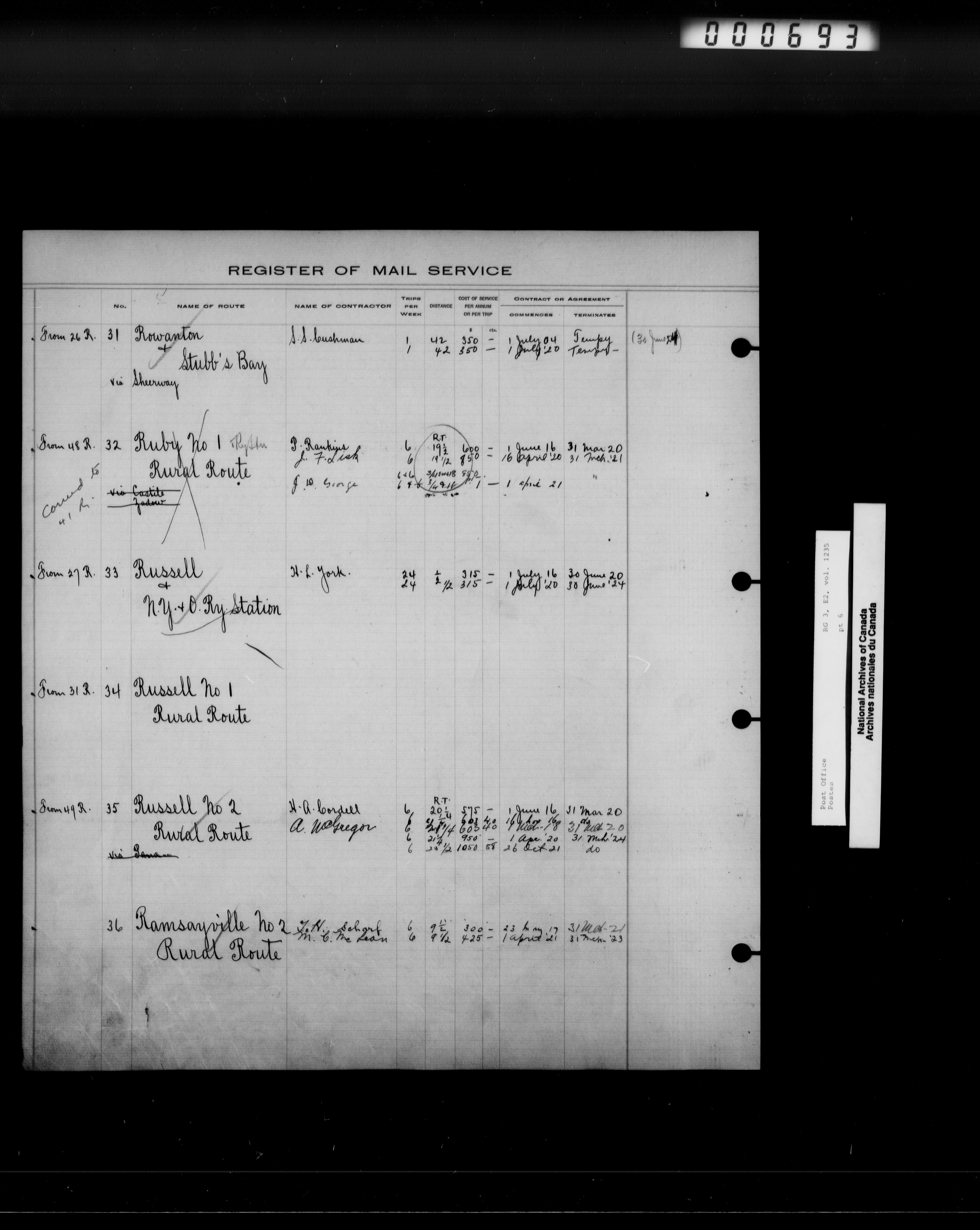 Post Office Department, Transportation Branch : Mail service contract registers, 1839-1980 - 9944