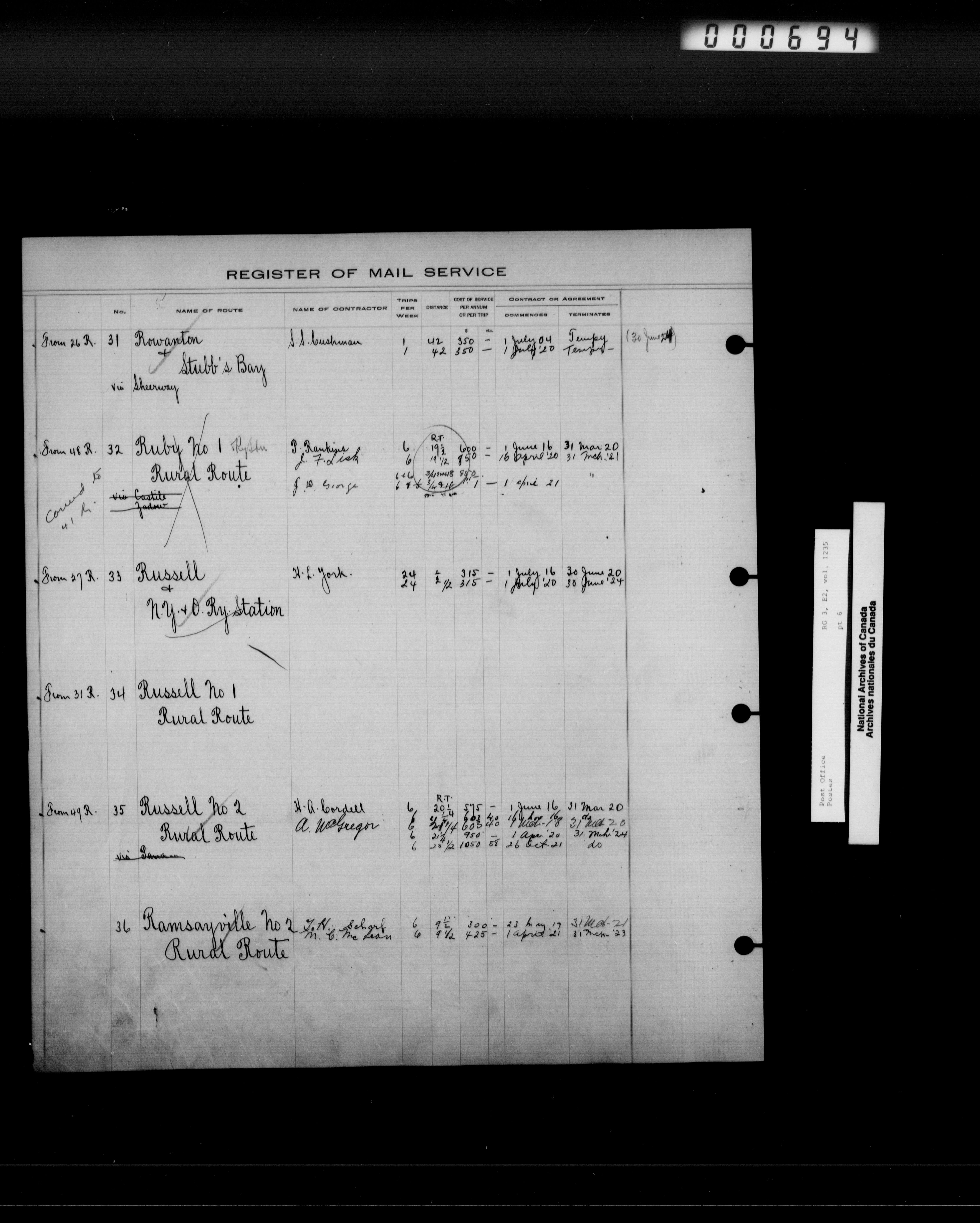 Post Office Department, Transportation Branch : Mail service contract registers, 1839-1980 - 9944