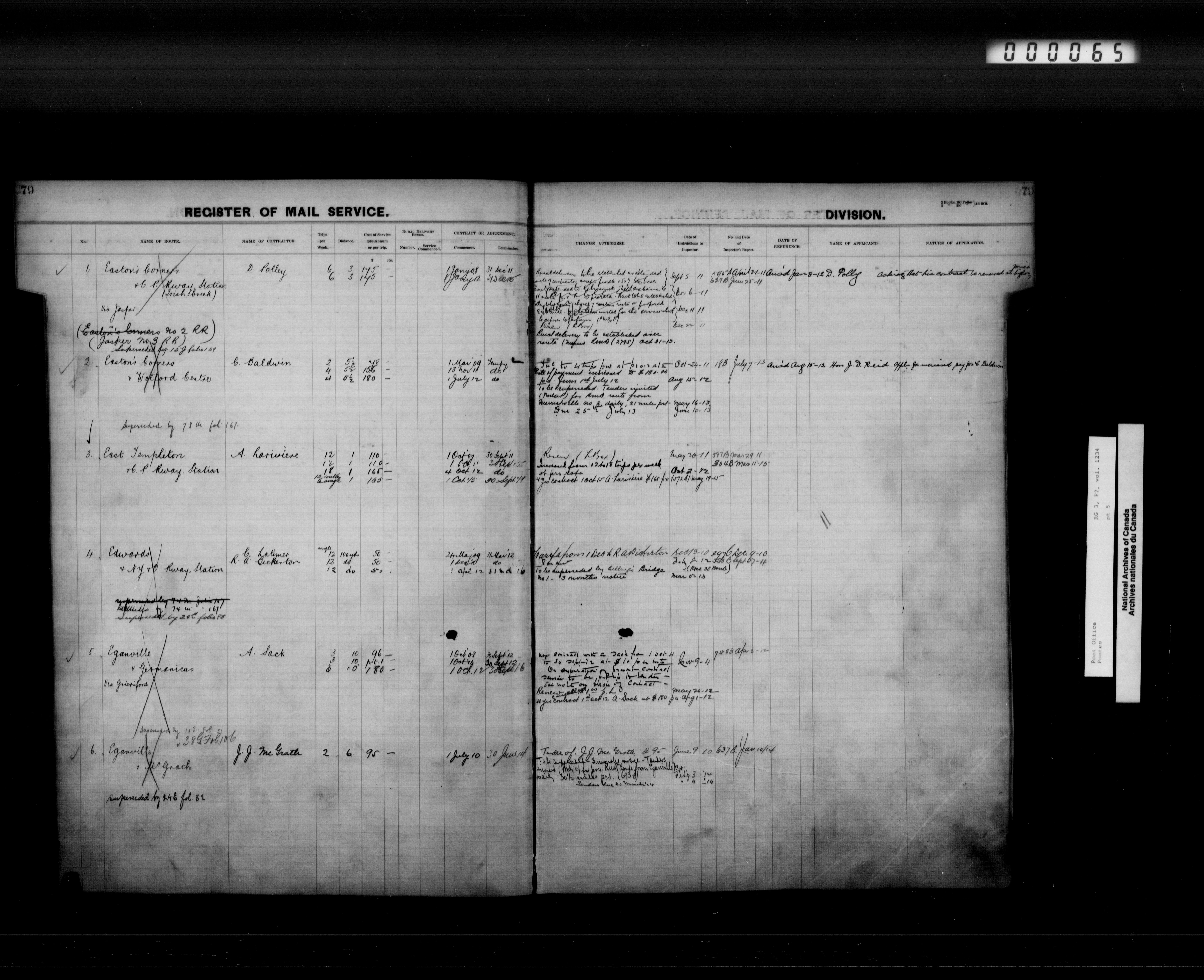 Post Office Department, Transportation Branch : Mail service contract registers, 1839-1980 - 9944