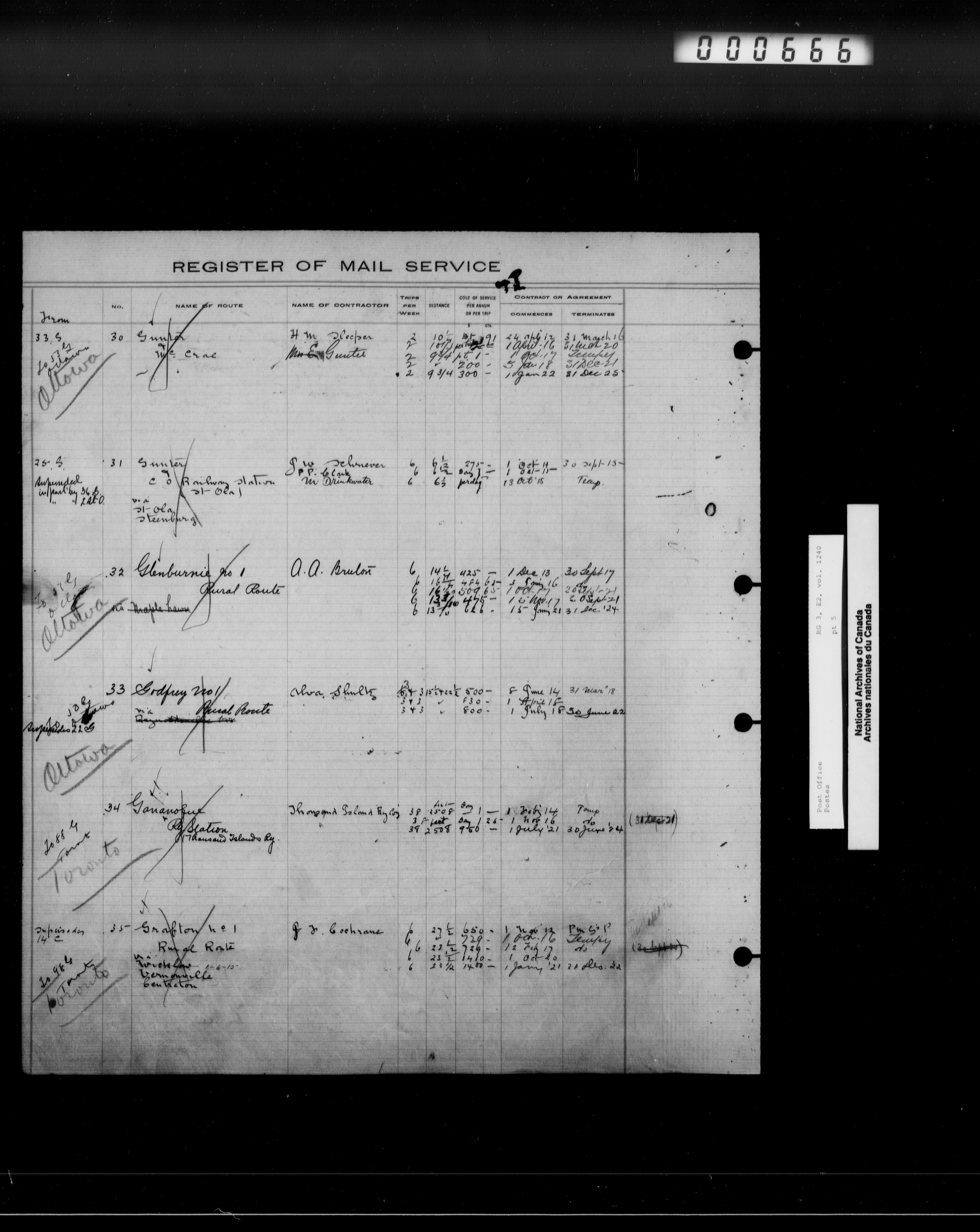Post Office Department, Transportation Branch : Mail service contract registers, 1839-1980 - 9945