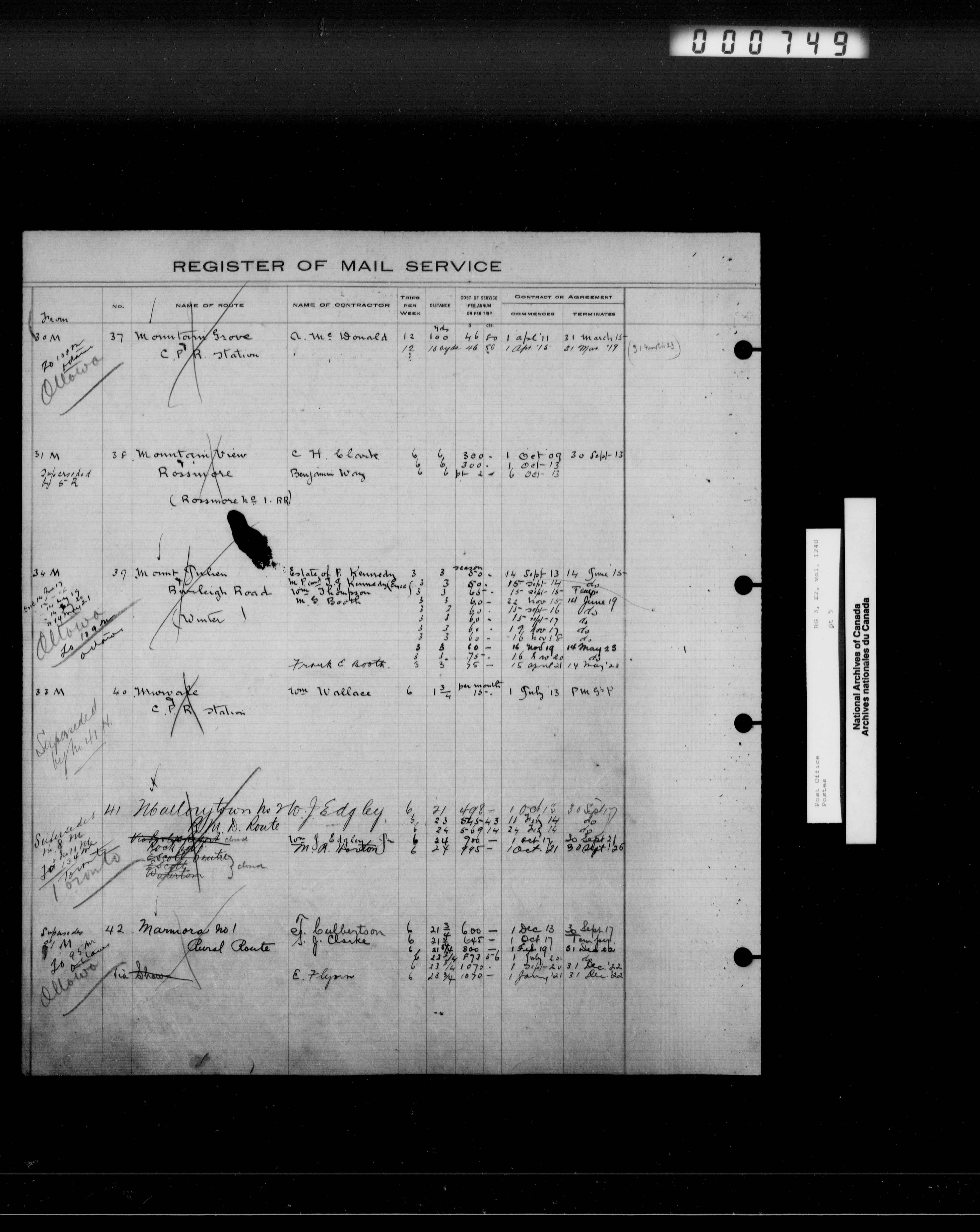 Post Office Department, Transportation Branch : Mail service contract registers, 1839-1980 - 9945