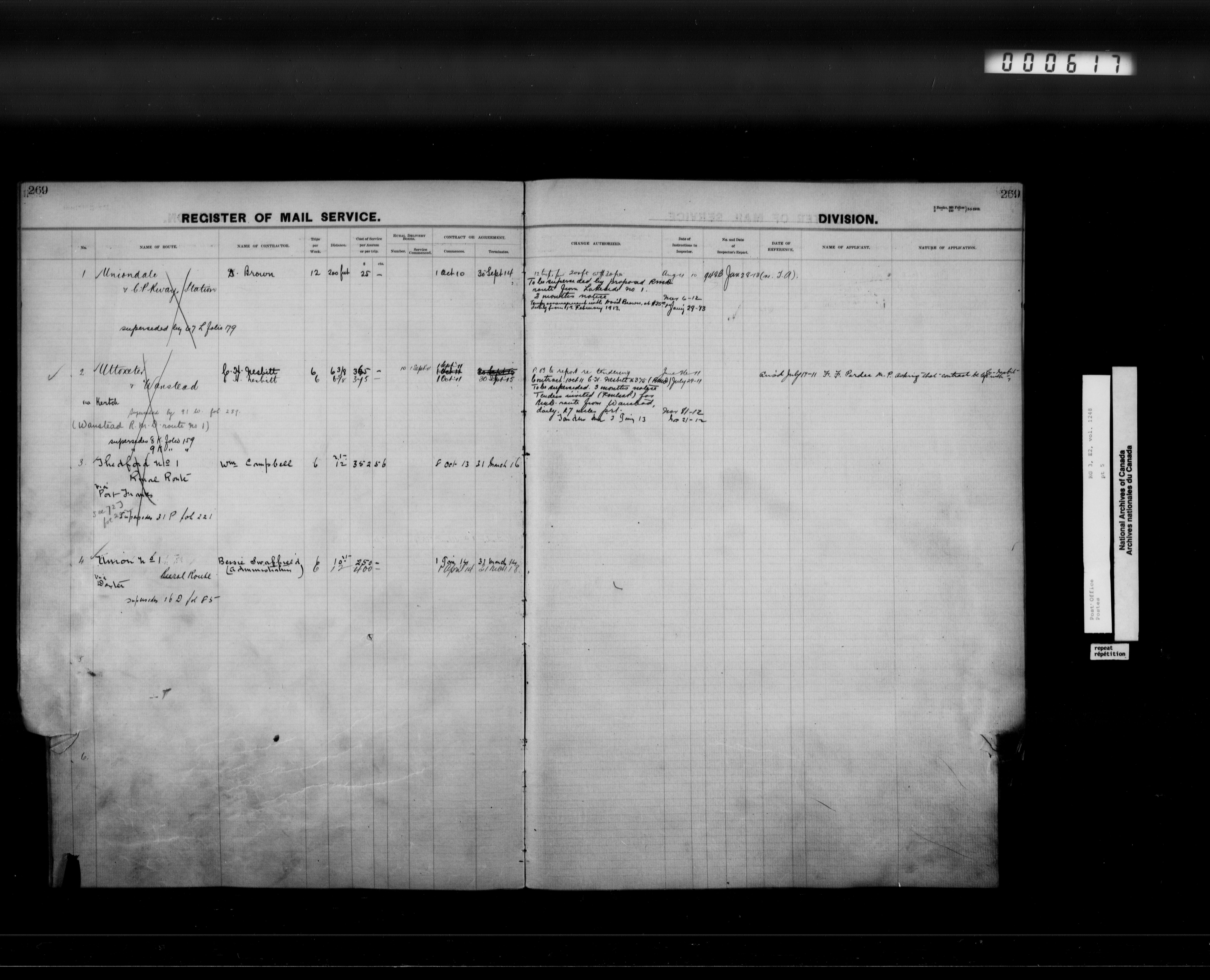 Post Office Department, Transportation Branch : Mail service contract registers, 1839-1980 - 9947
