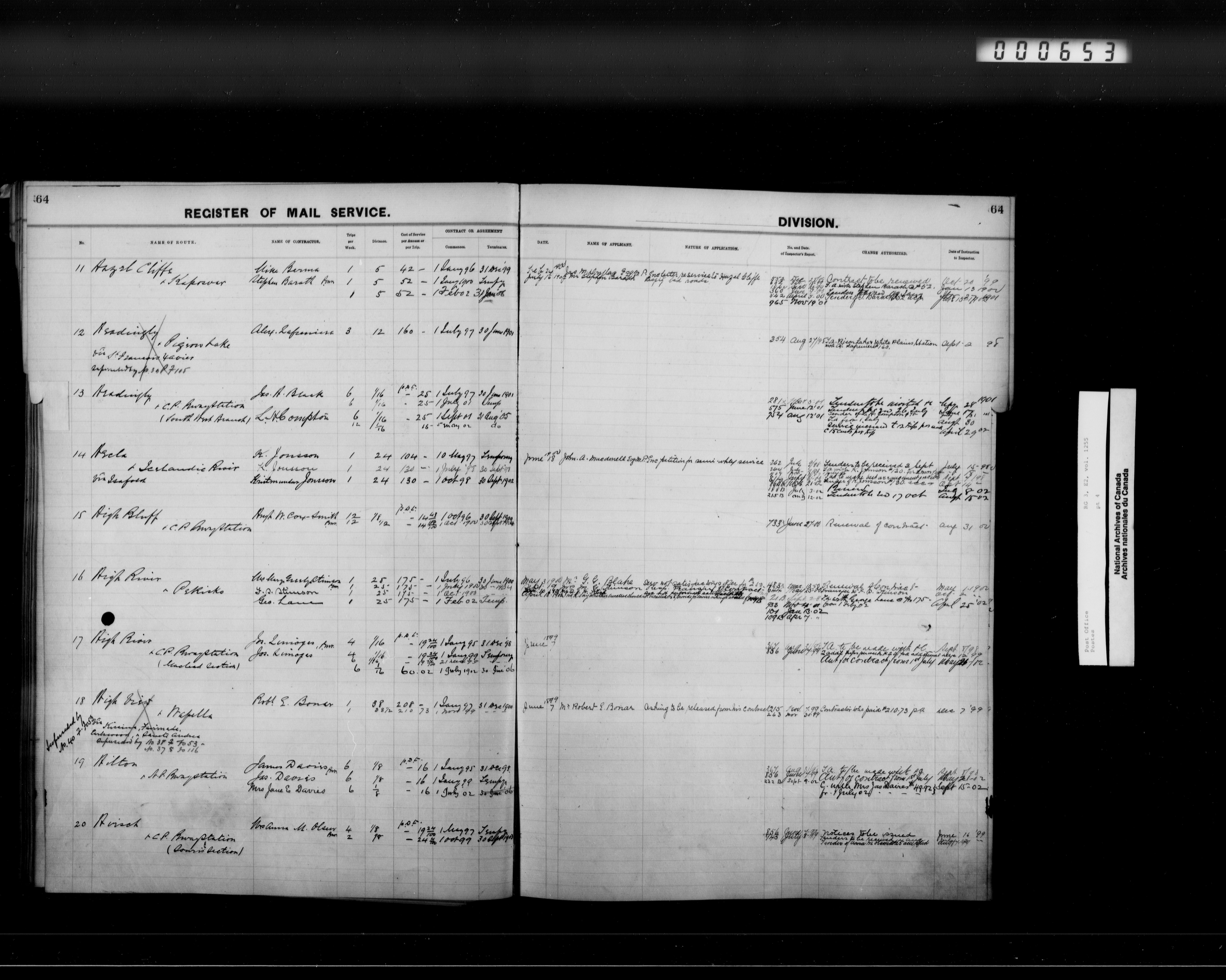 Post Office Department, Transportation Branch : Mail service contract registers, 1839-1980 - 9949
