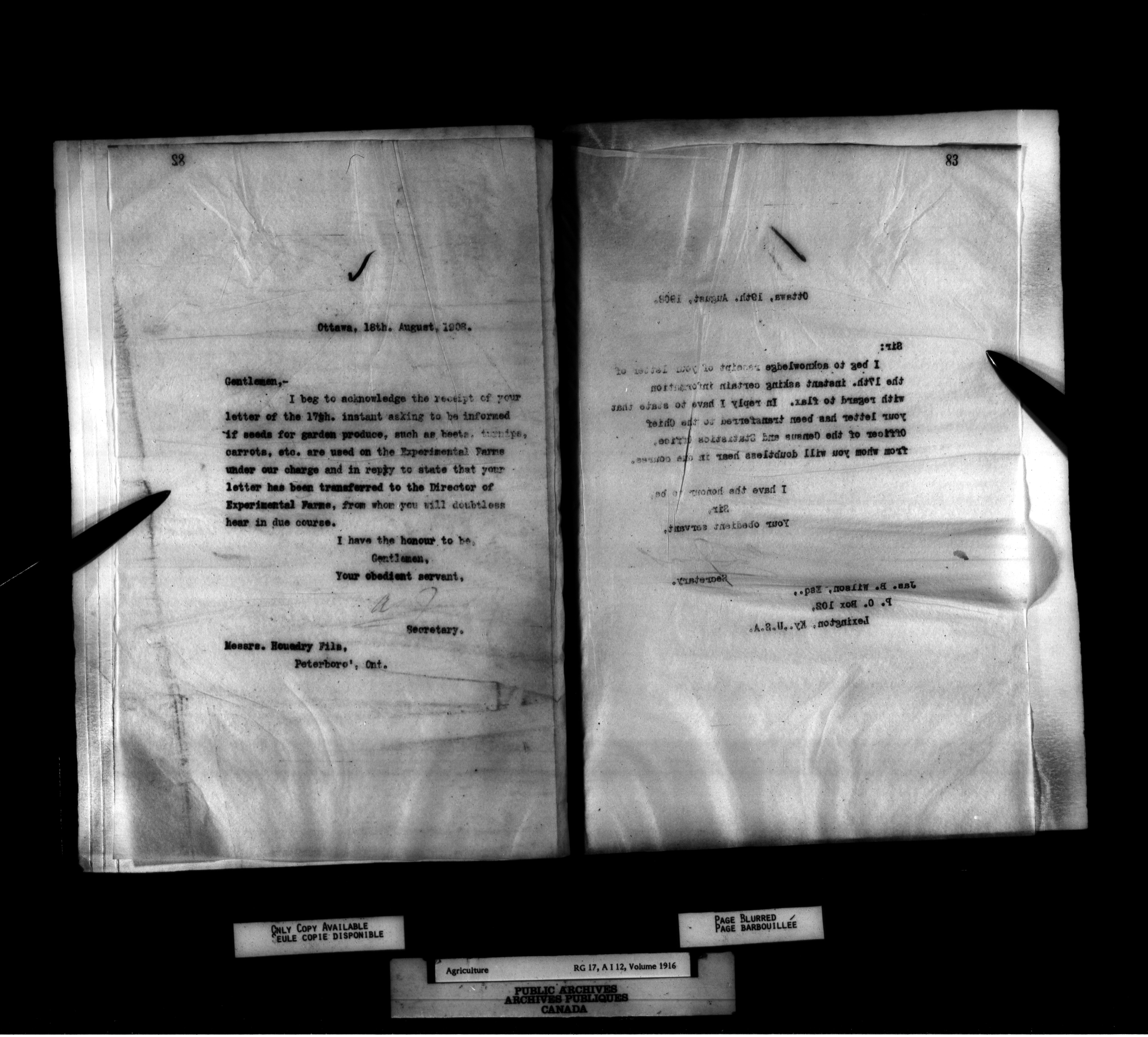 Department of Agriculture : Secretary and Assistant Deputy Minister's letterbooks, 1881-1916 - 995