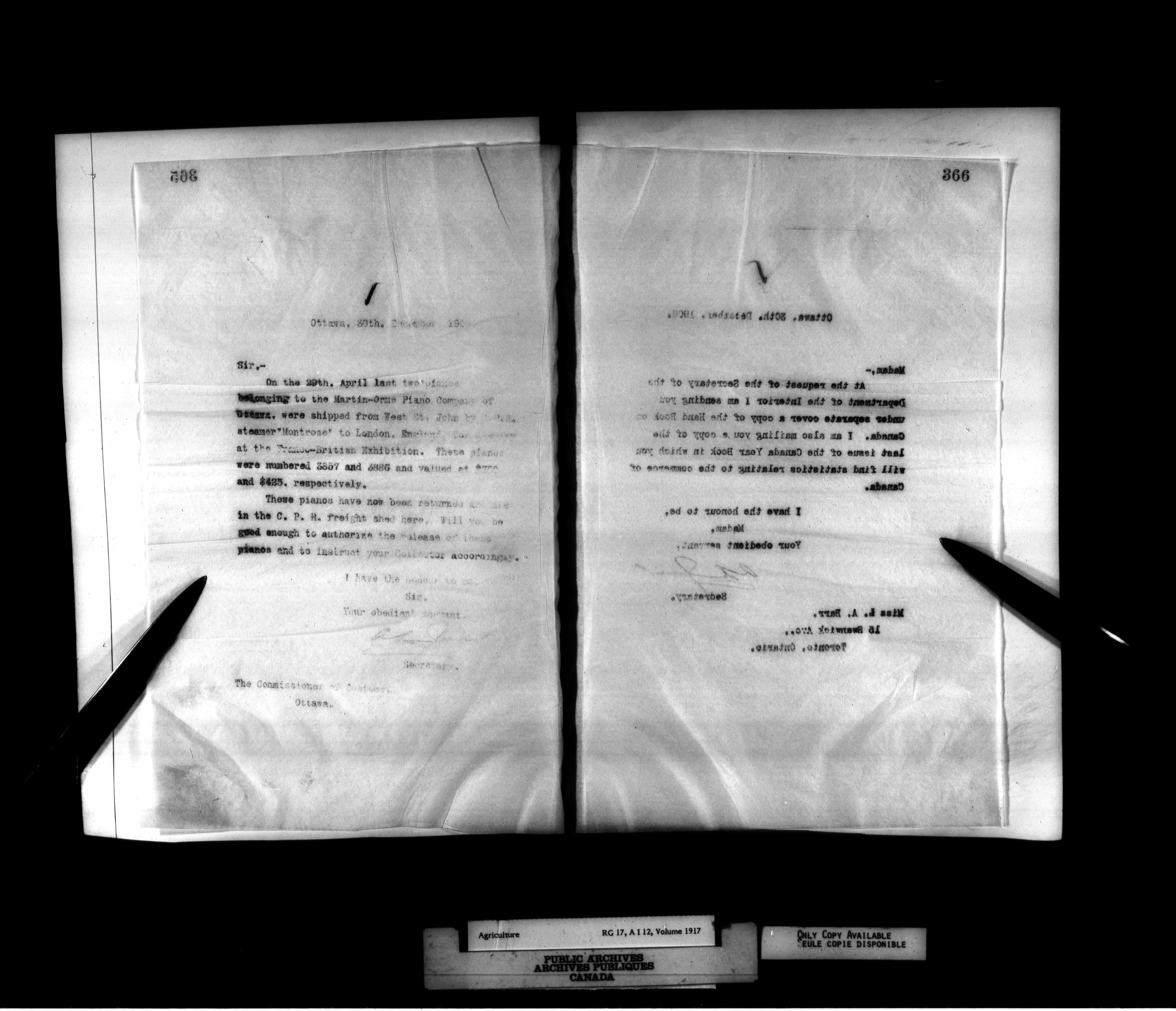 Department of Agriculture : Secretary and Assistant Deputy Minister's letterbooks, 1881-1916 - 995