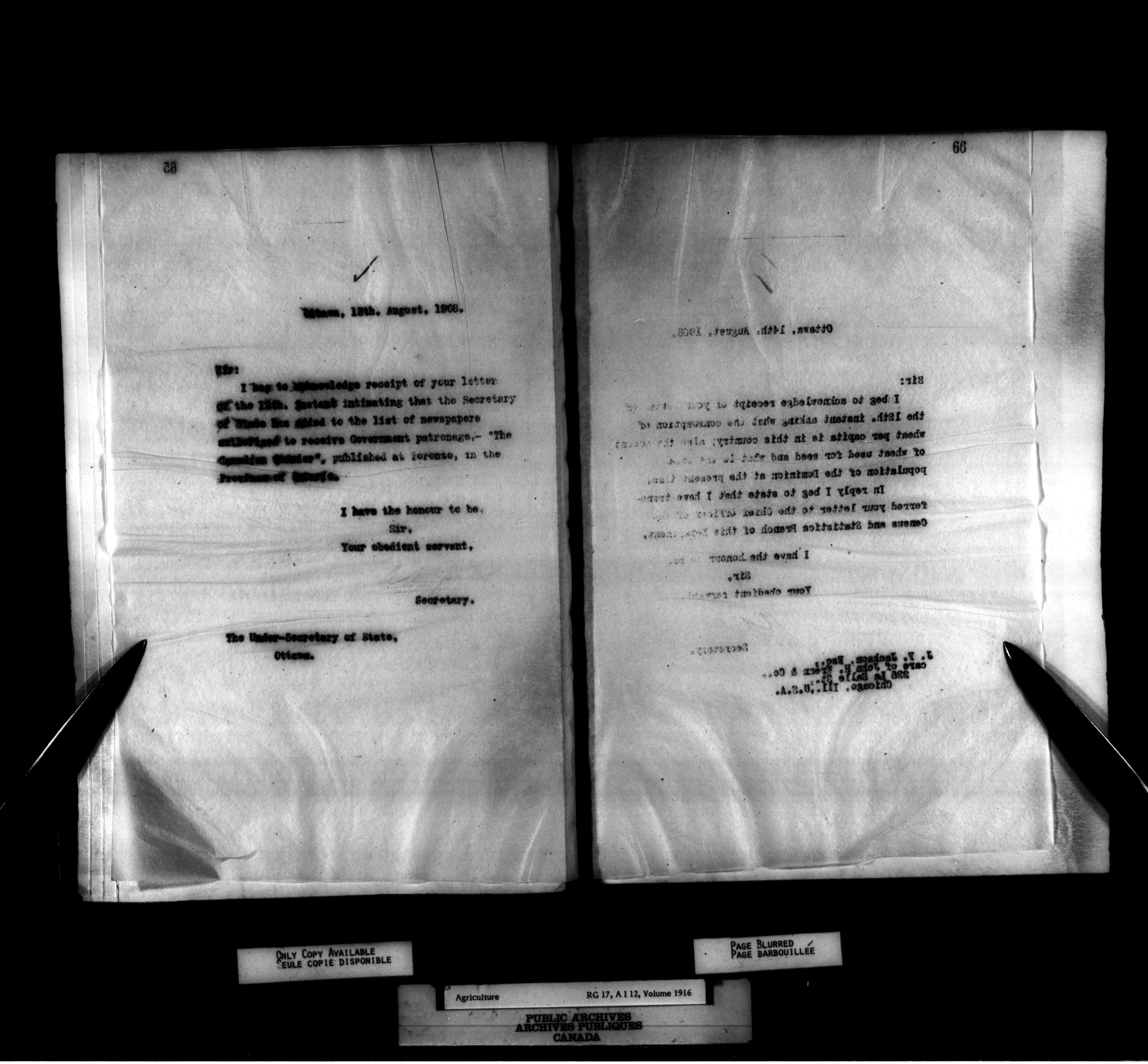 Department of Agriculture : Secretary and Assistant Deputy Minister's letterbooks, 1881-1916 - 995