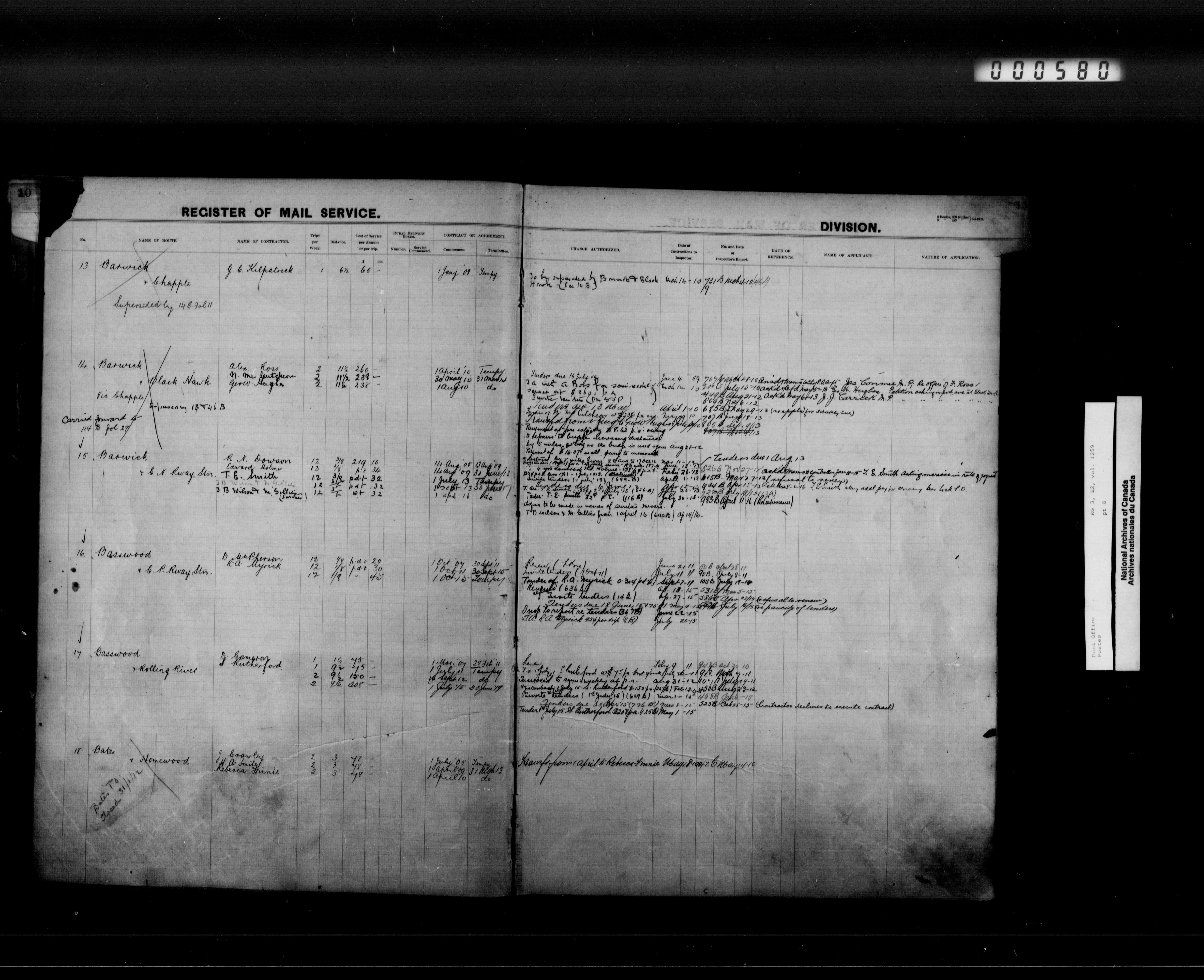 Post Office Department, Transportation Branch : Mail service contract registers, 1839-1980 - 9950
