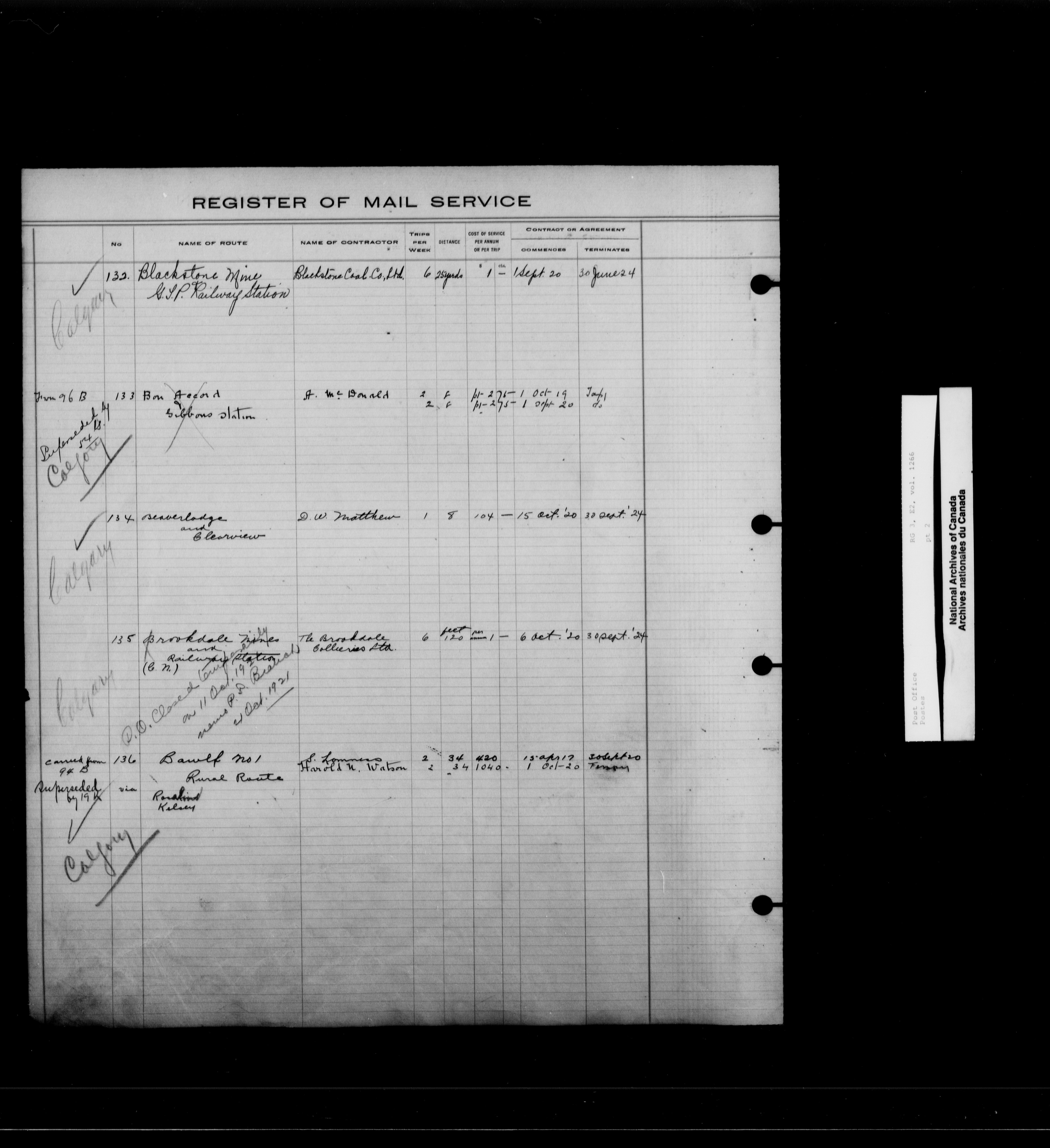 Post Office Department, Transportation Branch : Mail service contract registers, 1839-1980 - 9953