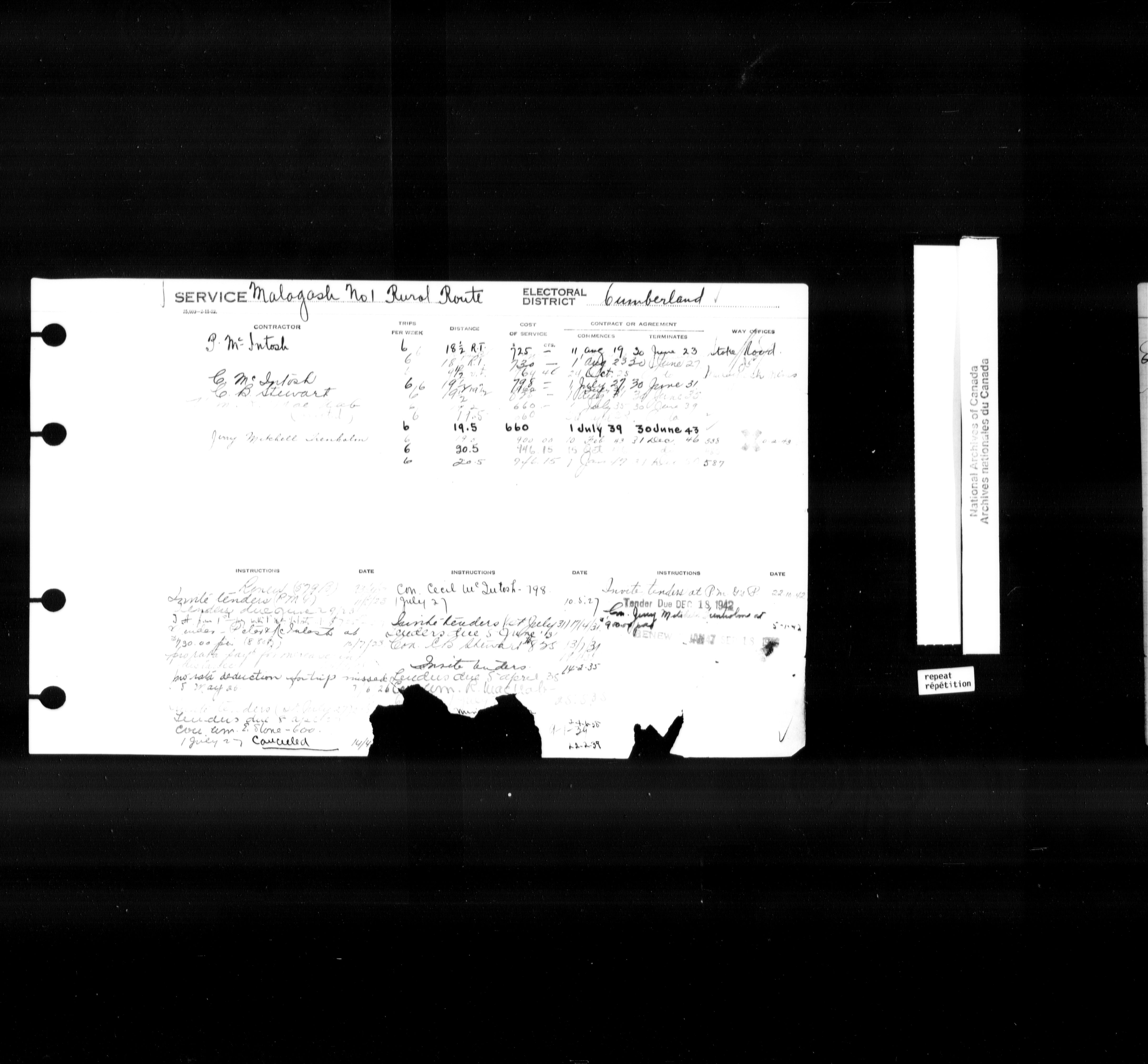 Post Office Department, Transportation Branch : Mail service contract registers, 1839-1980 - 9961