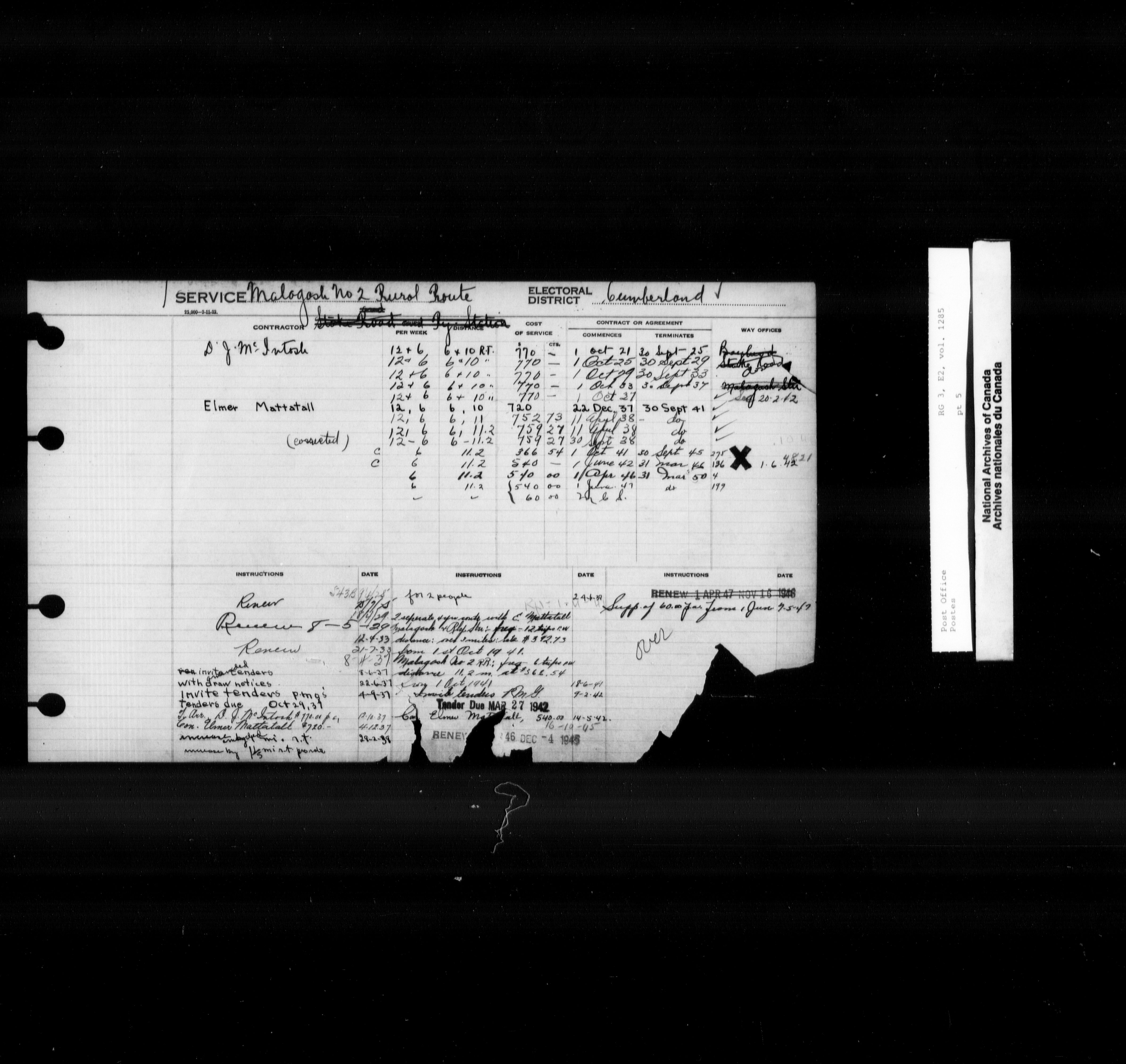Post Office Department, Transportation Branch : Mail service contract registers, 1839-1980 - 9961